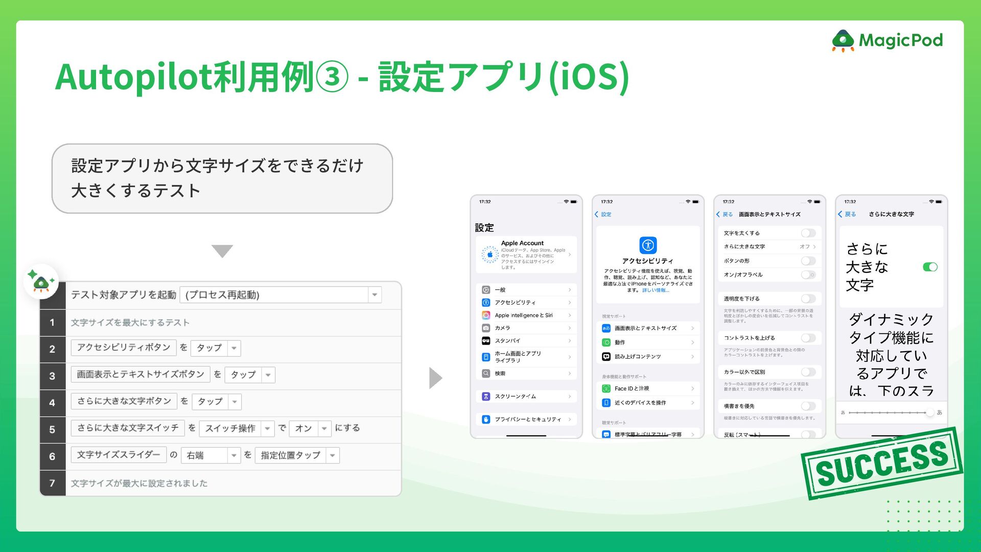 設定アプリから文字サイズをできるだけ 大きくするテスト Autopilot利用例③ - 設定アプリ(iOS)