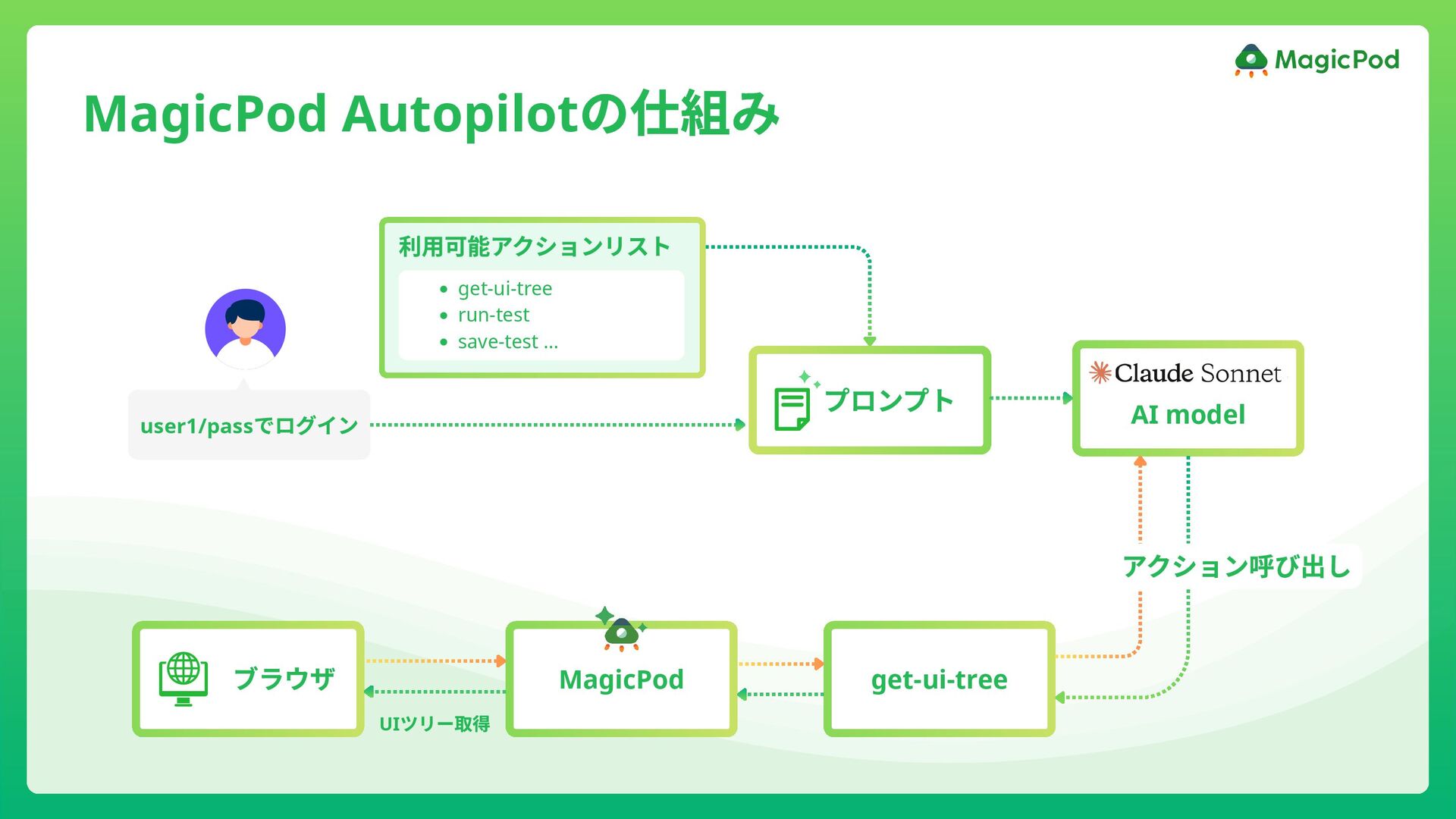 MagicPod ブラウザ AI model UI ツリー取得 MagicPod Autopilot の仕組み
