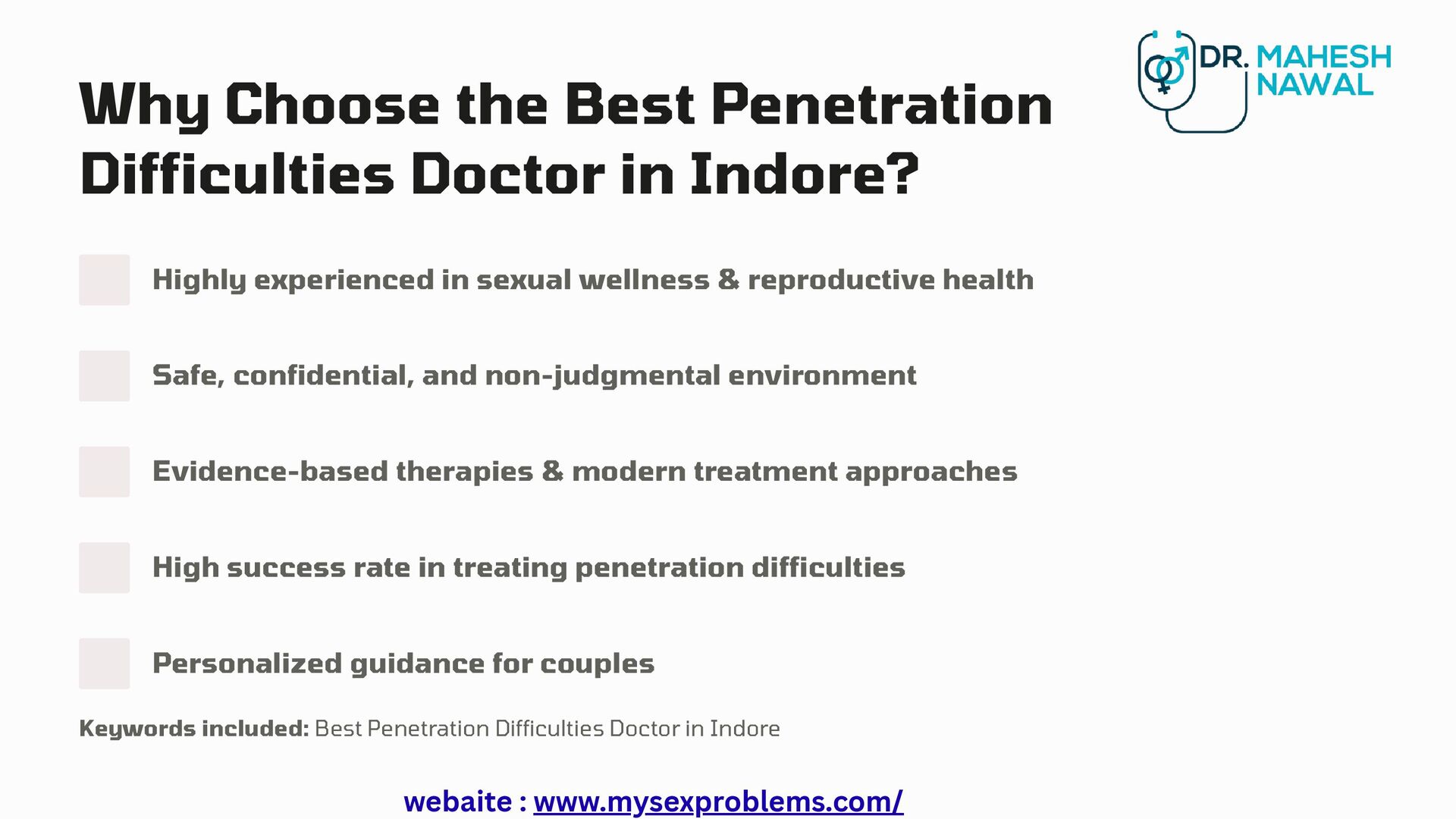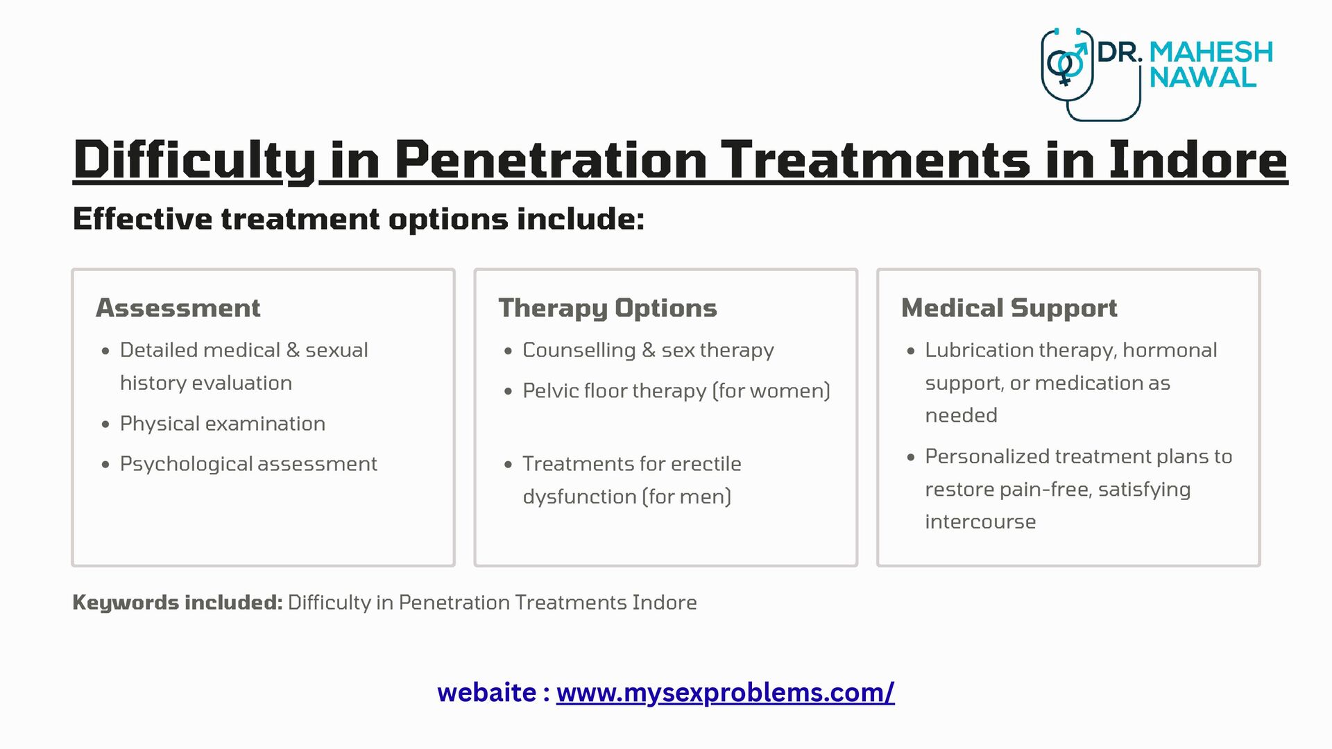Overcome penetration challenges with the finest Difficulty in Penetration Treatments in Indore. Trusted by many, the Best Penetration Difficulties Doctor in Indore ensures safe, comfortable, and evidence-based treatment. for more info. https://www.mysexproblems.com/difficulty-in-penetration-treatments/