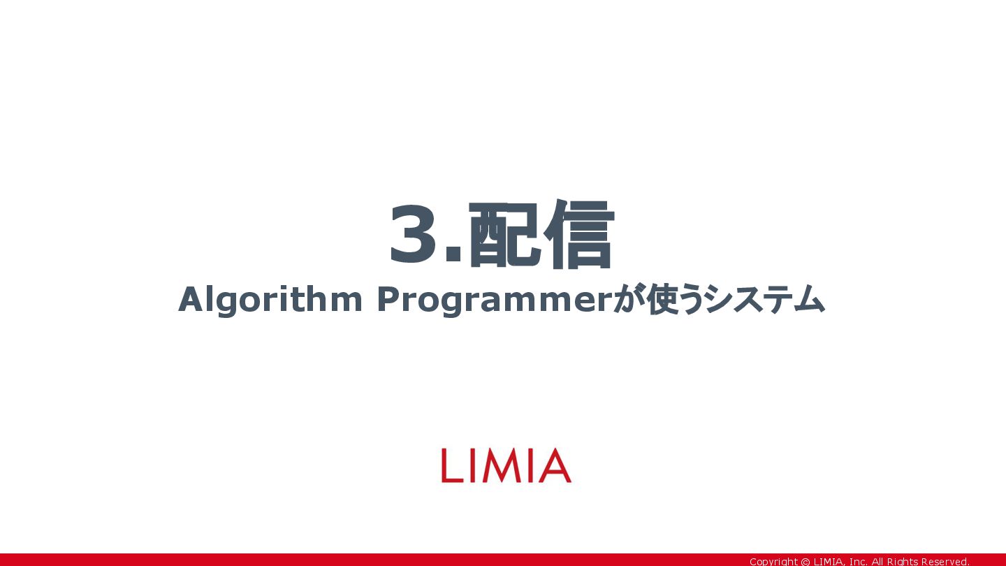 Copyright © LIMIA, Inc. All Rights Reserved. 3.配信 Algorithm Programmerが使うシステム