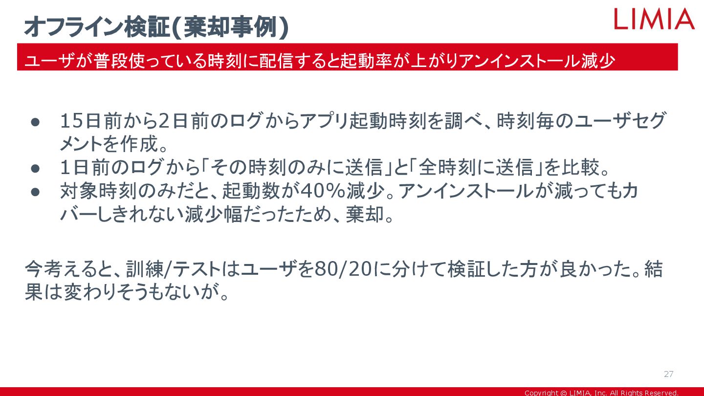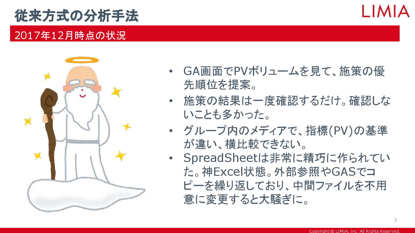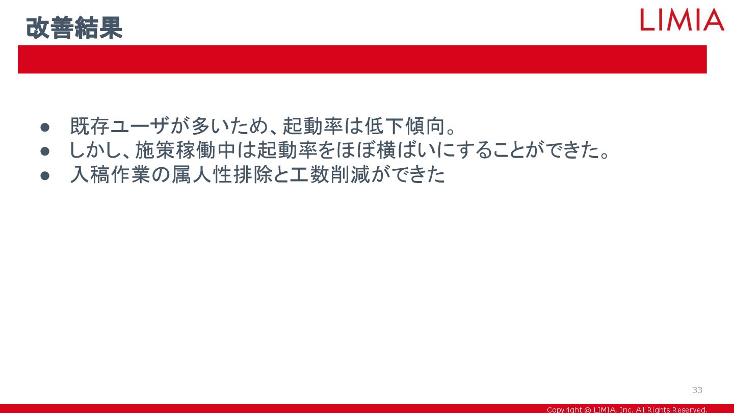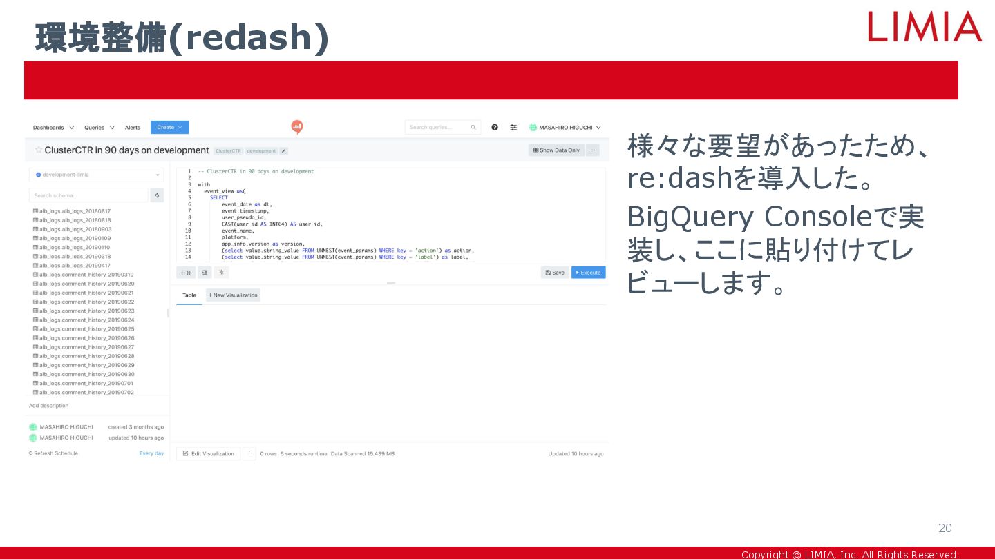 • iOS/AndroidはGoogleAnalyticsに飛ばしていたイベントを FirebaseAnalyticsにも飛ばすようにした。 • GoogleAnalyticsのEventは、パラメータにactionとlabelという物を付 けていた。それをそのままFirebaseAnalyticsにも飛ばした。 イベントログ 2017年12月開始の施策 13 select event_name, (select value.string_value FROM UNNEST(event_params) WHERE key = 'action') as action, (select value.string_value FROM UNNEST(event_params) WHERE key = 'label') as label, from `analytics_1234.events_*` where _TABLE_SUFFIX = REPLACE(CAST(DATE_SUB(CURRENT_DATE, INTERVAL 1 day) AS string), '-', '')