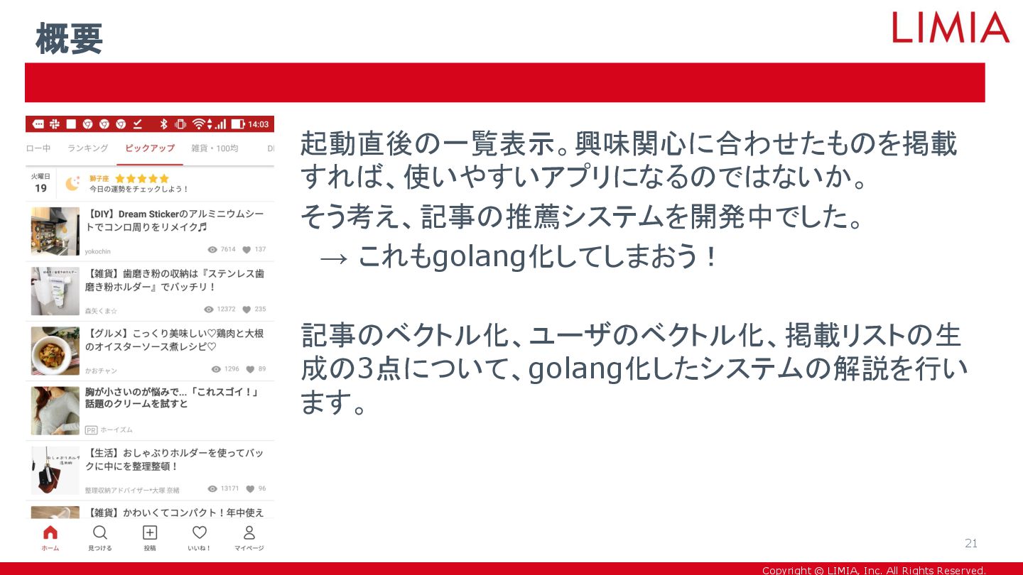 Copyright © LIMIA, Inc. All Rights Reserved. Pythonからgoに移行した 推薦システム