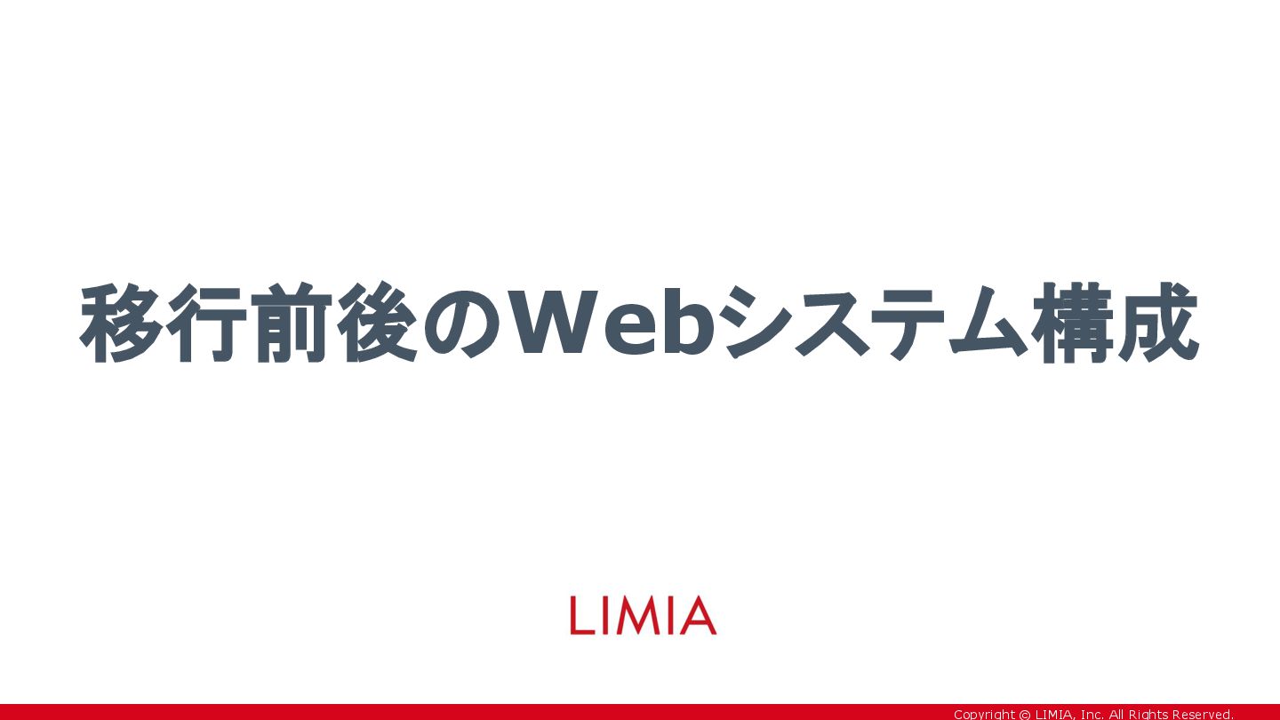 Copyright © LIMIA, Inc. All Rights Reserved. 移行前後のWebシステム構成