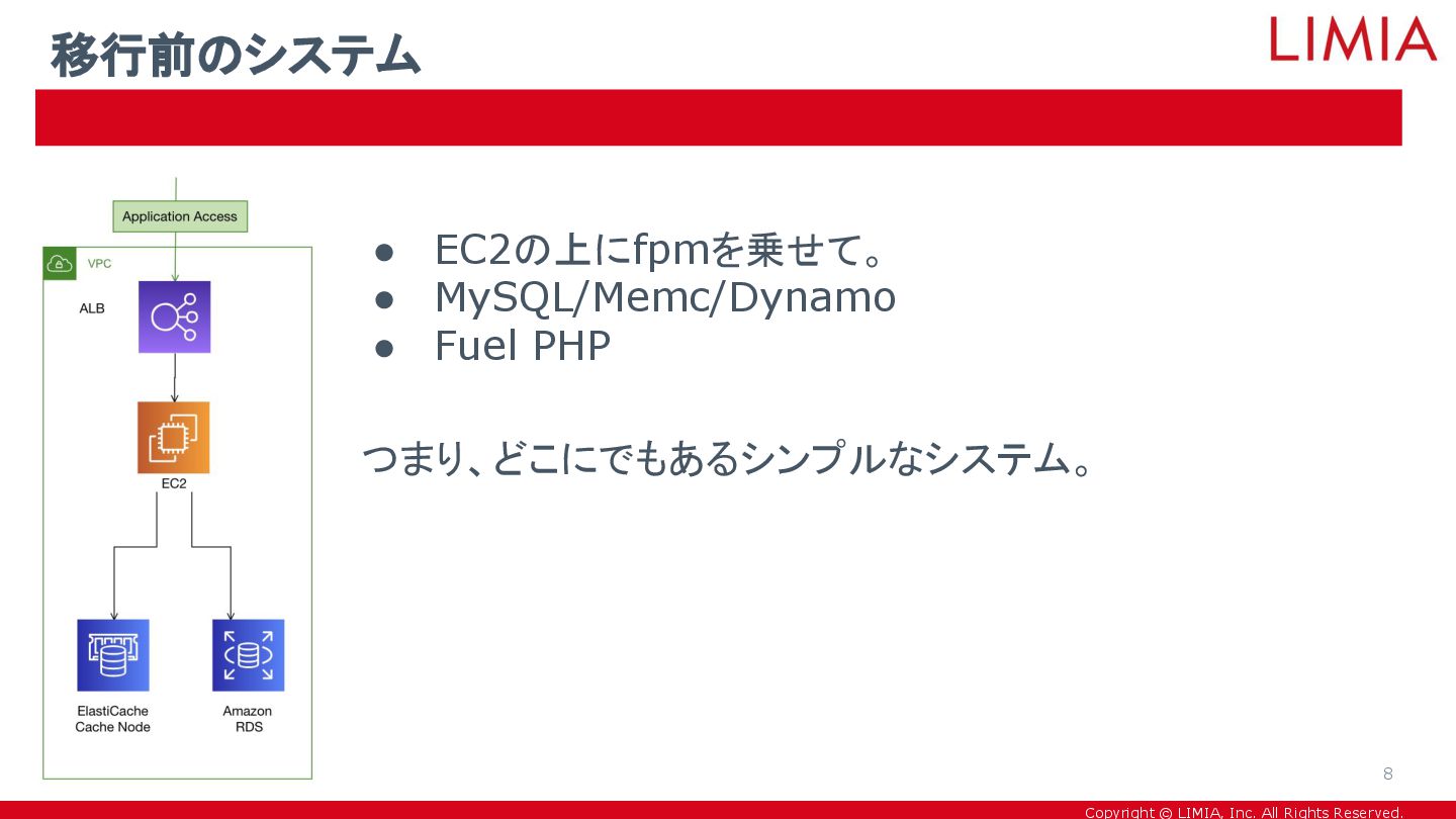 Copyright © LIMIA, Inc. All Rights Reserved. • EC2の上にfpmを乗せて。 •