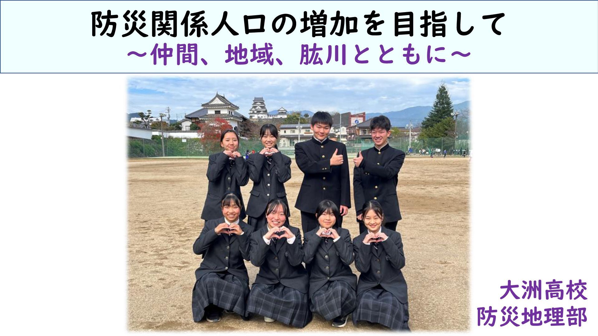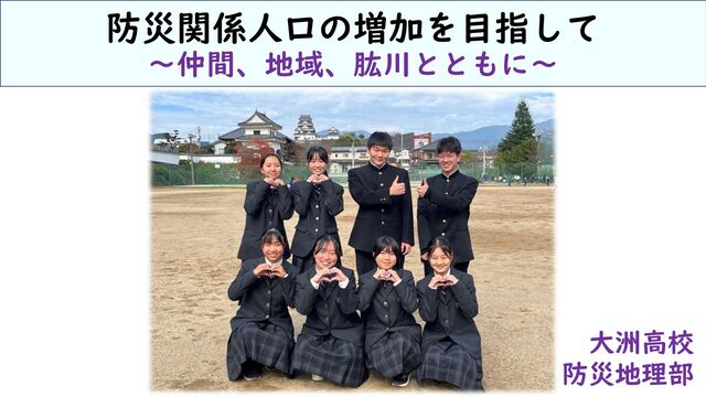 防災関係人口の増加を目指して ~仲間、地域、肱川とともに~ 大洲高校 防災地理部