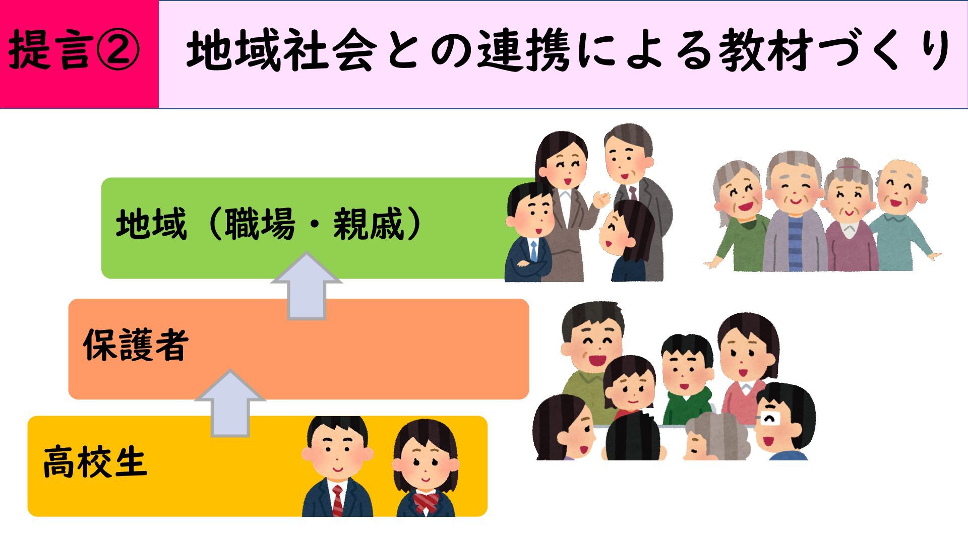 地域(職場・親戚) 保護者 高校生 提言② 地域社会との連携による教材づくり