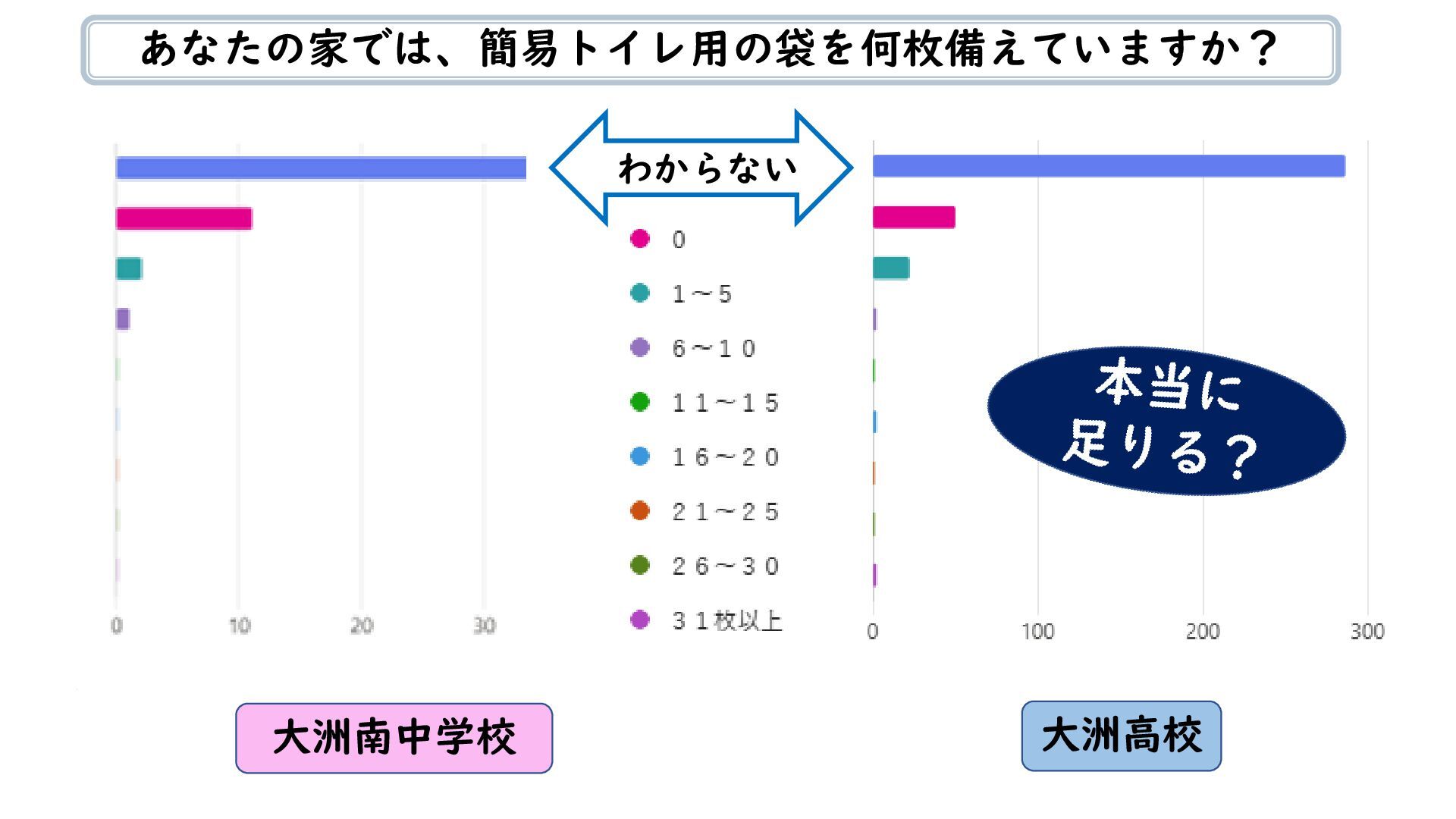 大洲高校 大洲南中学校 あなたの家では、簡易トイレ用の袋を何枚備えていますか? わからない