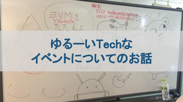 海浜幕張近辺でTechな勉強会をやるにあたり 会社で行っているゆるーい勉強会や某電話会社グループのエンジニア有志たちとやっているカンファレンスなどについて「なぜそんなことをしているのか」「どうやってやっているのか」「どんな効果があったのか」などについて話しました