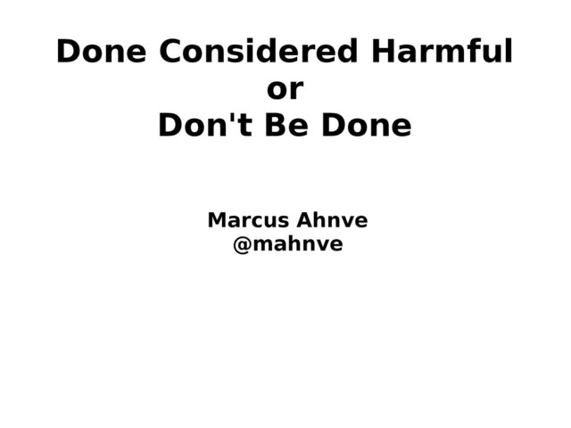 Done Considered Harmful or Don't Be Done Marcus Ahnve @mahnve