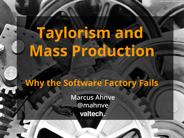 work, which replaces the old rule-of-thumb method. • Scientifically select and then train, teach, and develop the workman, whereas in the past he chose his own work and trained himself as best he could • Heartily cooperate with the men so as to insure all of the work being done in accordance with the principles of the science which has been developed. • There is an almost equal division of the work and the responsibility between the management and the workmen. The management take over all work for which they are better fitted than the workmen, while in the past almost all of the work and the greater part of the responsibility were thrown upon the men. Principles Standards, Measurements Certifications Process Steering, Best Practices Architects - Coders