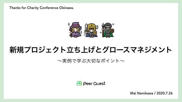 5IBOLTGPS$IBSJUZ$POGFSFODF0LJOBXB ৽نϓϩδΣΫτ্ཱͪ͛ͱάϩʔεϚωδϝϯτ ʙ࣮ྫͰֶͿେͳϙΠϯτʙ .BJ/BNJLBXB