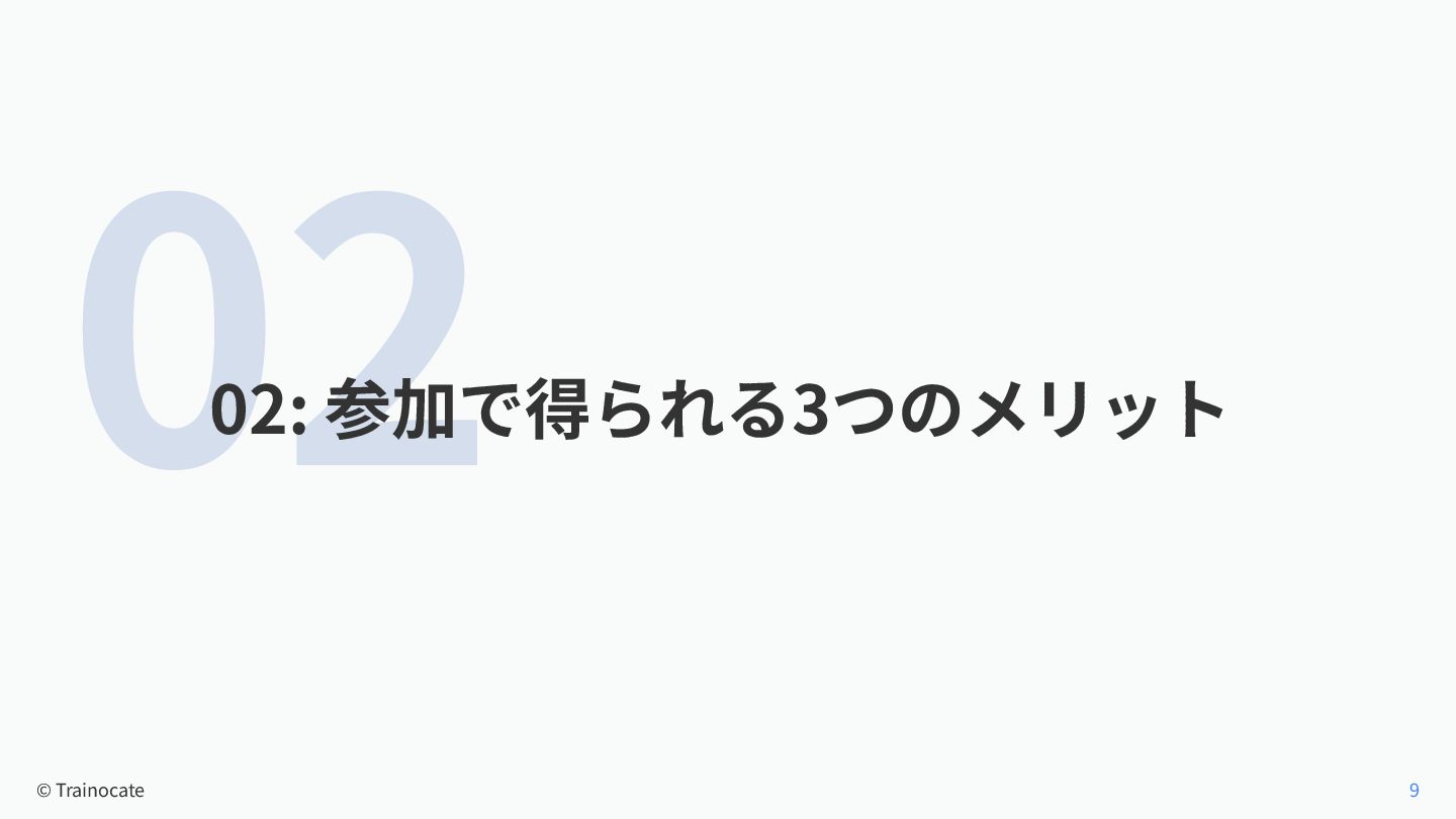 02 02: 参加で得られる3つのメリット © Trainocate 9