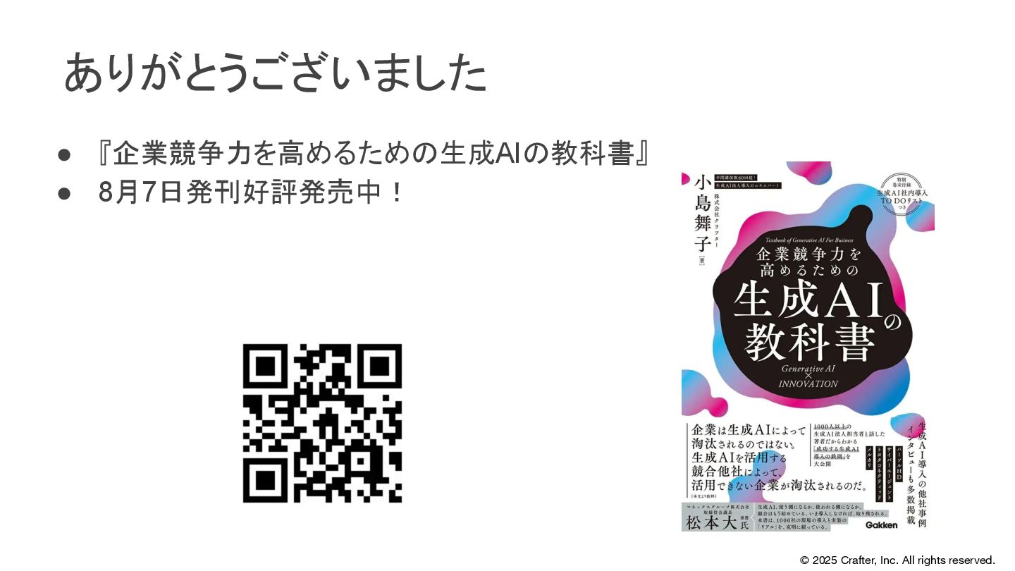 © 2025 Crafter, Inc. All rights reserved. ありがとうございました • 『企業競争力を高めるための生成AIの教科書』