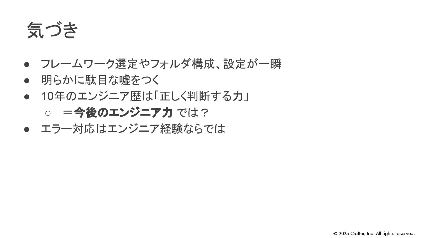 © 2025 Crafter, Inc. All rights reserved. 気づき • フレームワーク選定やフォルダ構成、設定が一瞬