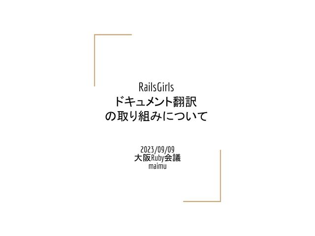 RailsGirls ドキュメント翻訳 の取り組みについて 2023/09/09 大阪Ruby会議 maimu