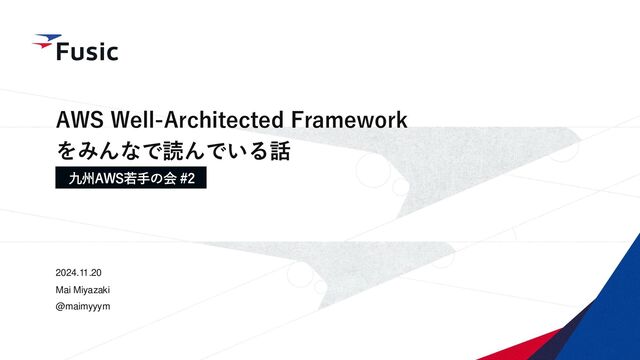 ©Fusic Co., Ltd. 0 AWS Well-Architected Framework をみんなで読んでいる話 2024.11.20 Mai