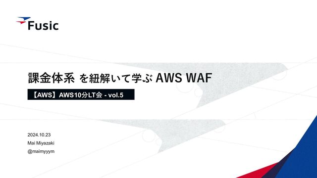 ©Fusic Co., Ltd. 0 課⾦体系 を紐解いて学ぶ AWS WAF 2024.10.23 Mai