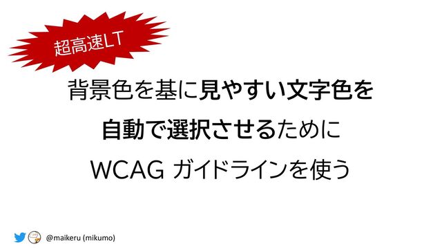 この LT では、W3C の Web Content Accessibility Guidelines Working Group のガイドラインを参考に、計算した数値を基に背景色に対して見やすさの指標を算出し判断する方法をご紹介します。