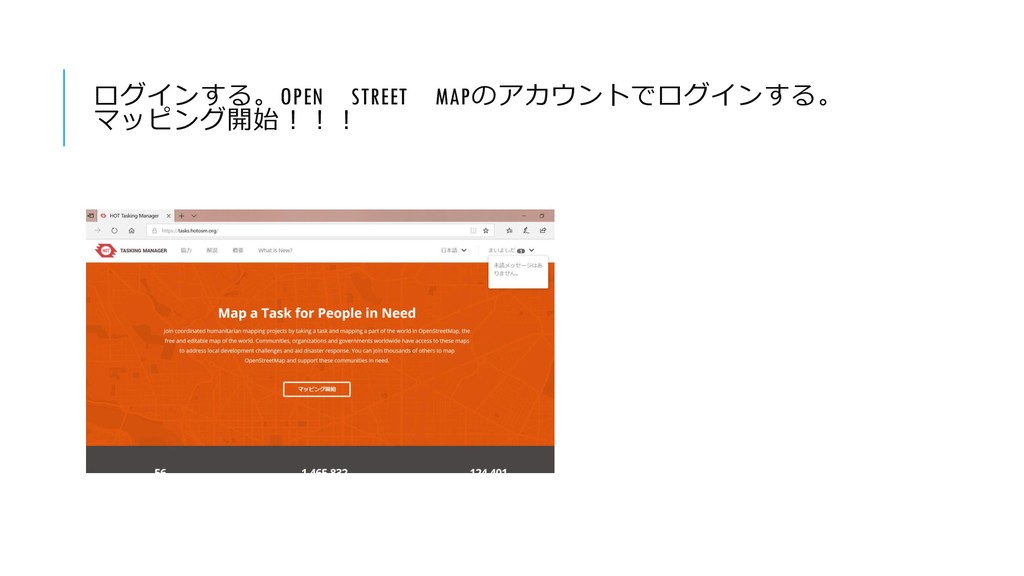 ログインする。OPEN STREET MAPのアカウントでログインする。 マッピング開始!!!