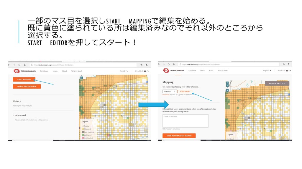 一部のマス目を選択しSTART MAPPINGで編集を始める。 既に黄色に塗られている所は編集済みなのでそれ以外のところから 選択する。 START EDITORを押してスタート!