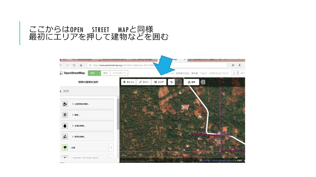 ここからはOPEN STREET MAPと同様 最初にエリアを押して建物などを囲む