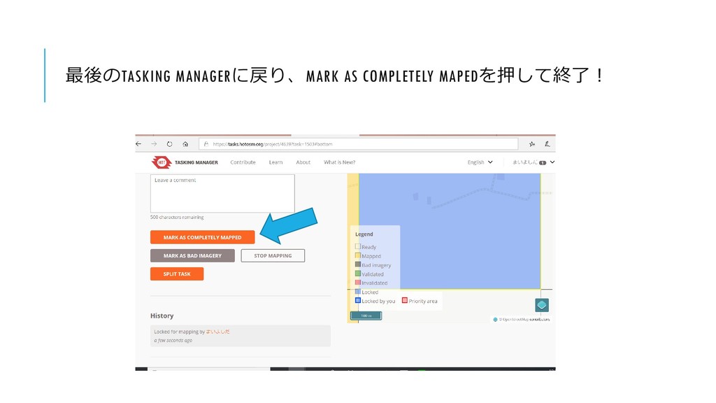 最後のTASKING MANAGERに戻り、MARK AS COMPLETELY MAPEDを押して終了!