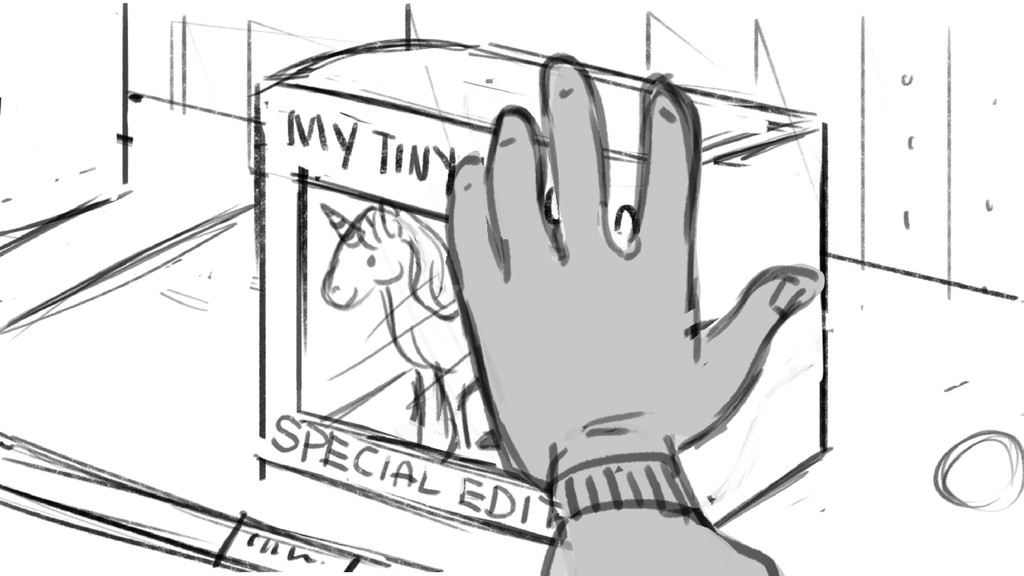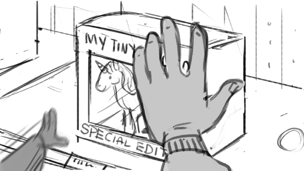 An avid toy collector must face-off against a little girl in order to pick up the last special edition "My Little Unicorn."