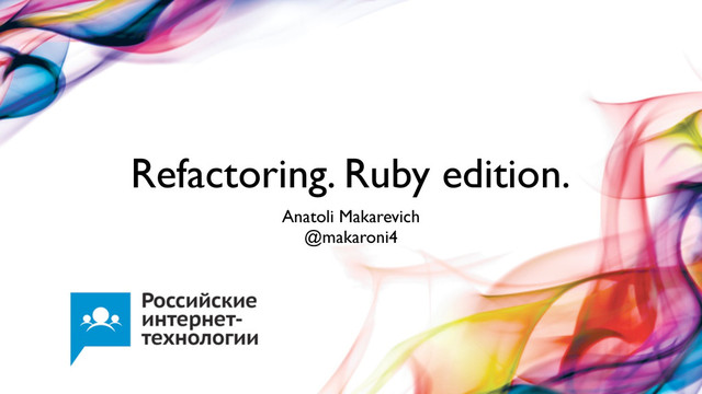 Refactoring. Ruby edition. Anatoli Makarevich @makaroni4