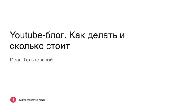 Youtube-блог. Как делать и сколько стоит Иван Тельтевский Digital-агентство Мэйк