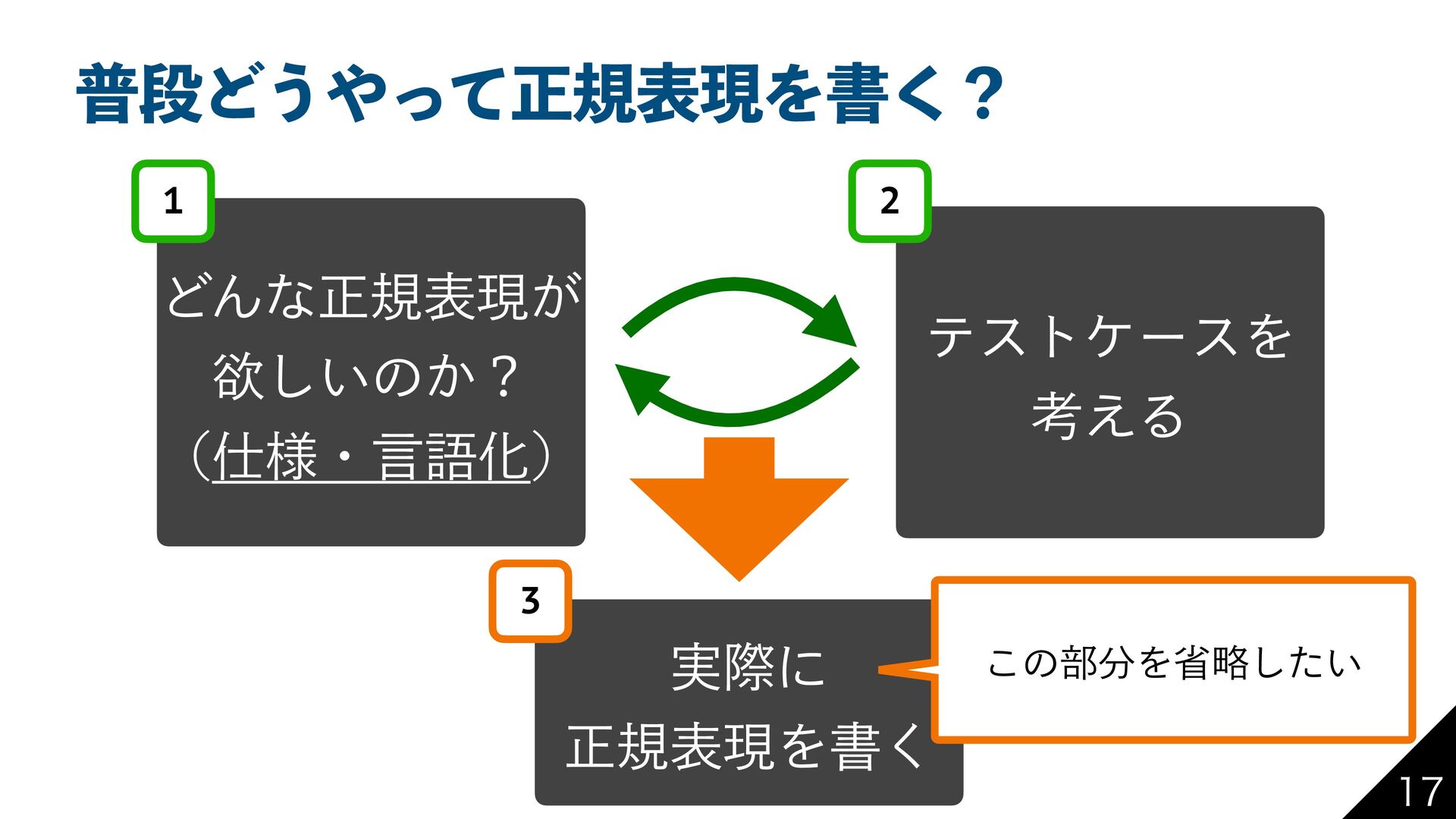 ීஈͲ͏ͬͯਖ਼نදݱΛॻ͘ʁ ͲΜͳਖ਼نදݱ͕ ཉ͍͠ͷ͔ʁ ༷ɾݴޠԽ 1 ςετέʔεΛ ߟ͑Δ 2 ࣮ࡍʹ