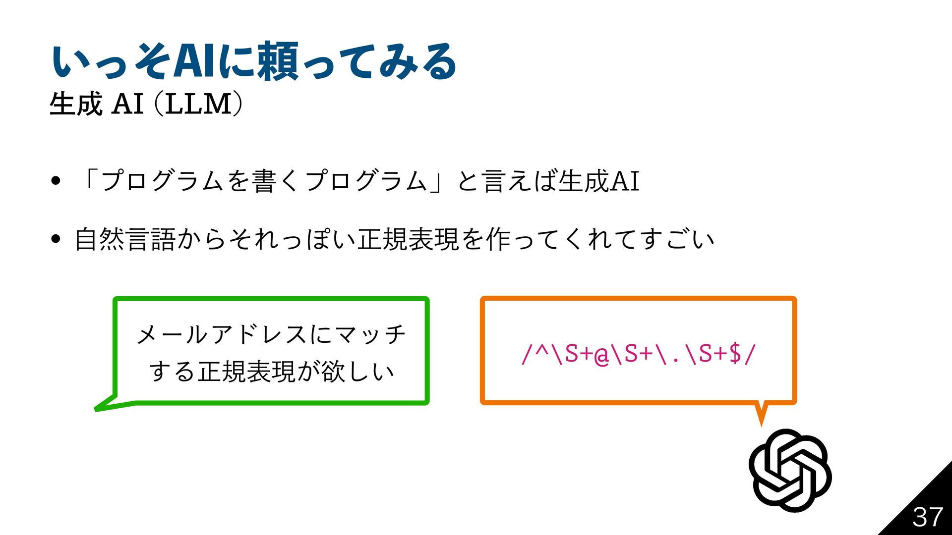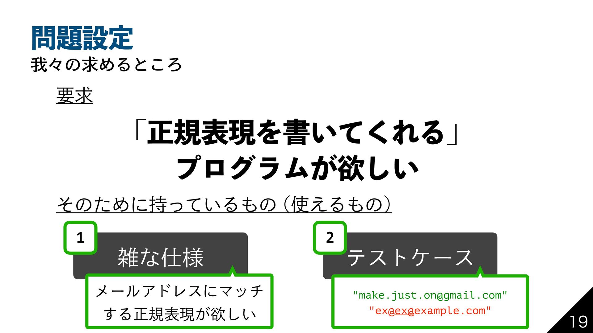͍ͬͦ"*ʹཔͬͯΈΔ ੜ"* --. w ʮϓϩάϥϜΛॻ͘ϓϩάϥϜʯͱݴ͑ੜ"* w ࣗવݴޠ͔ΒͦΕͬΆ͍ਖ਼نදݱΛ࡞ͬͯ͘Ε͍ͯ͢͝ ϝʔϧΞυϨεʹϚον ͢Δਖ਼نදݱ͕ཉ͍͠