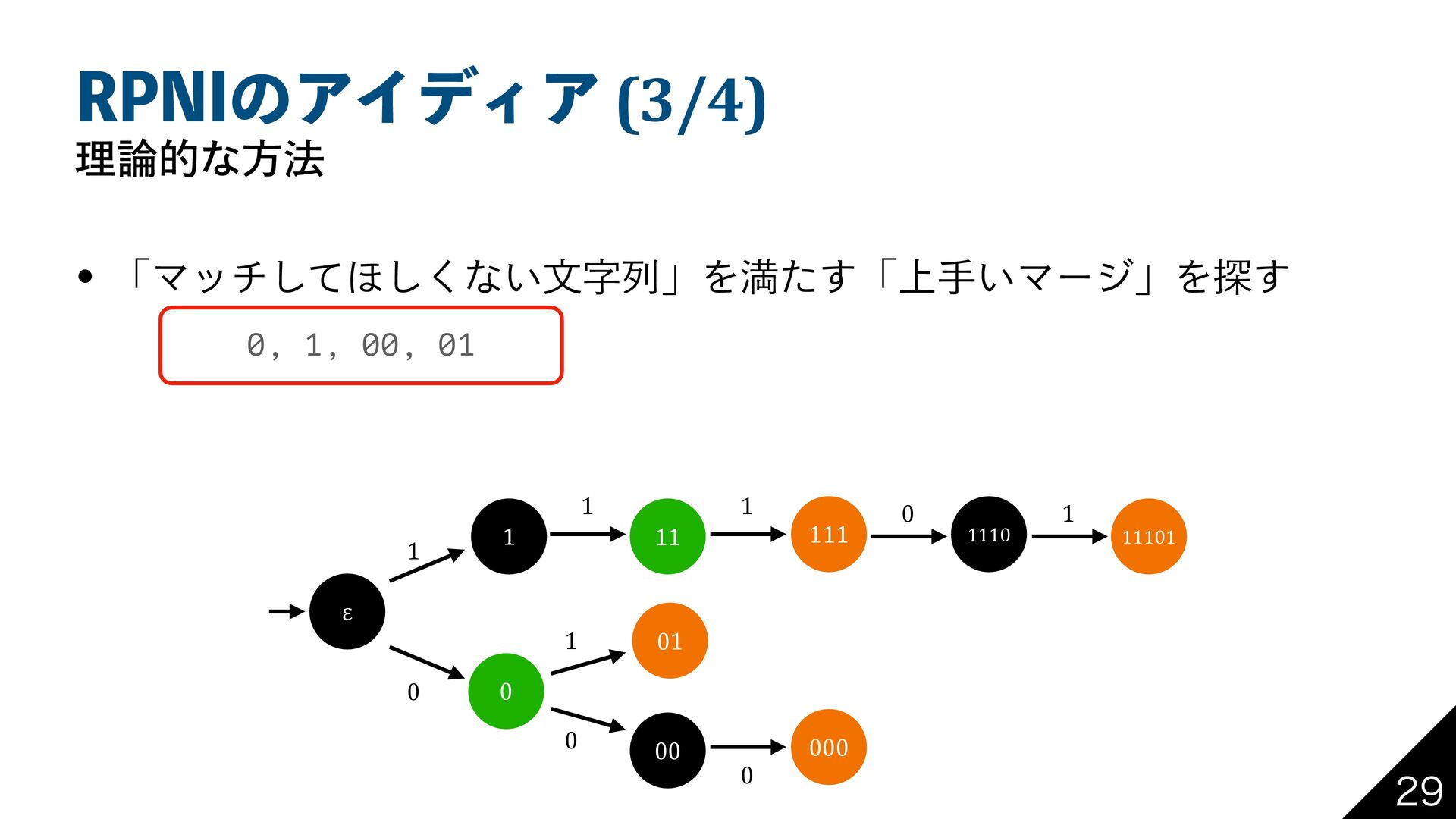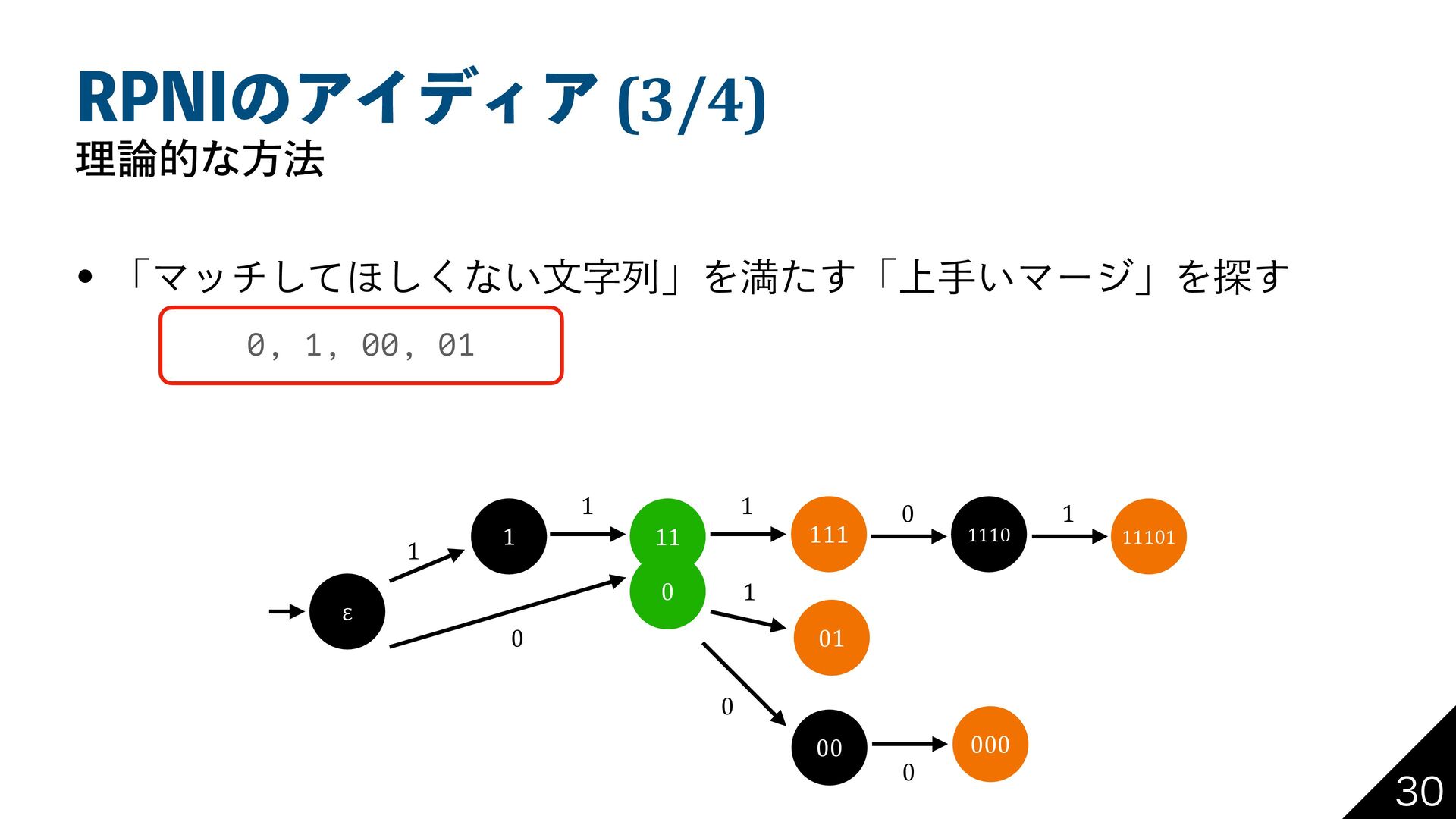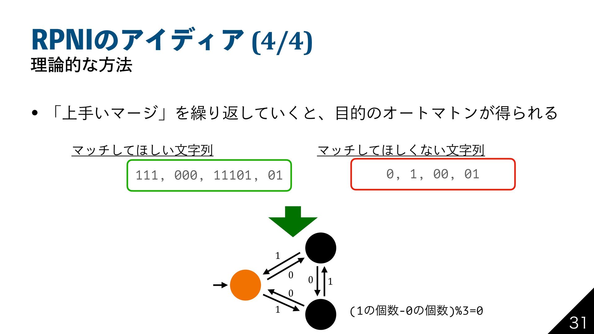 31/*ͷΞΠσΟΞ (4/4) ཧతͳํ๏ w ʮ্ख͍ϚʔδʯΛ܁Γฦ͍ͯ͘͠ͱɺతͷΦʔτϚτϯ͕ಘΒΕΔ 0, 1, 00, 01