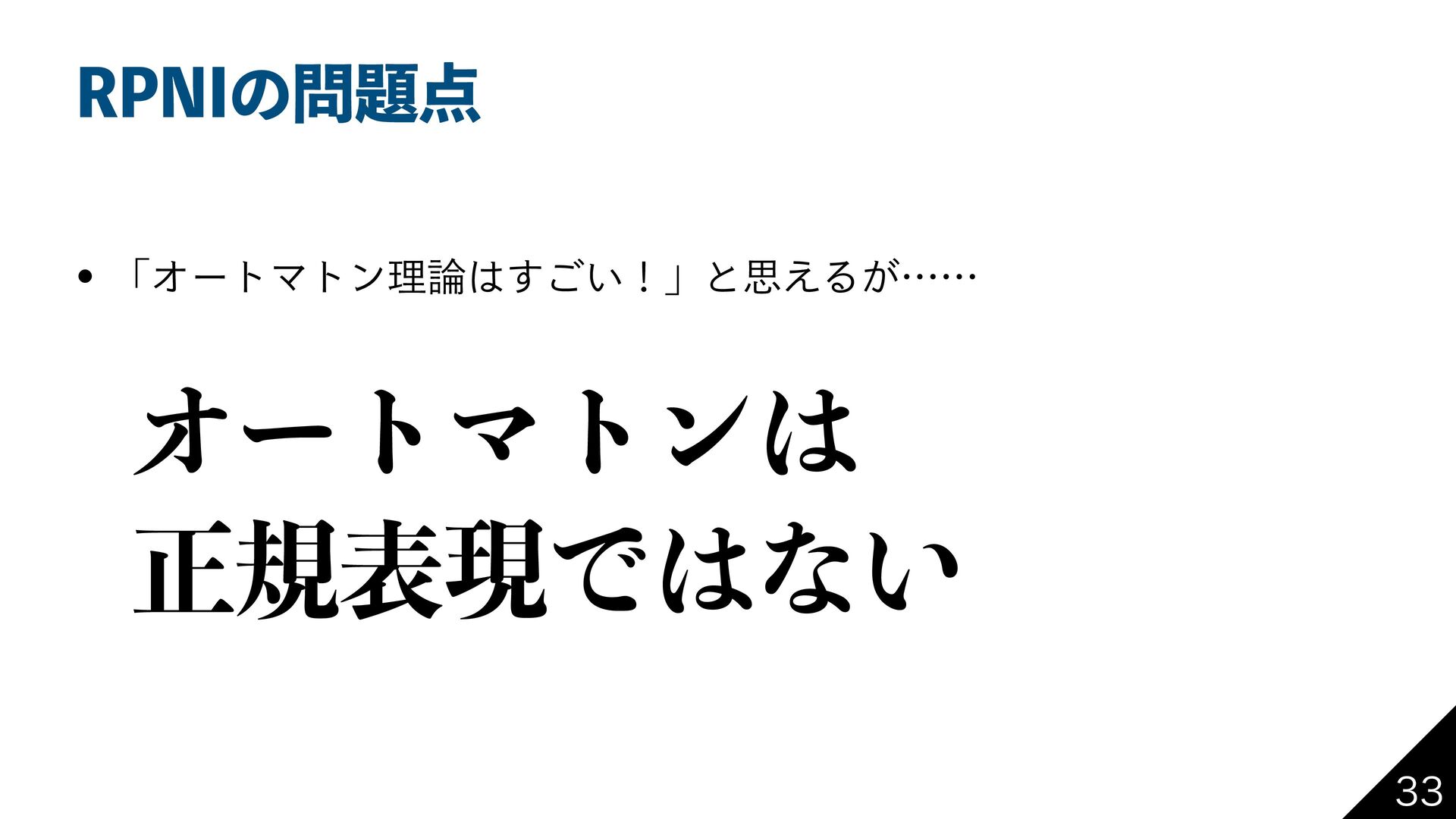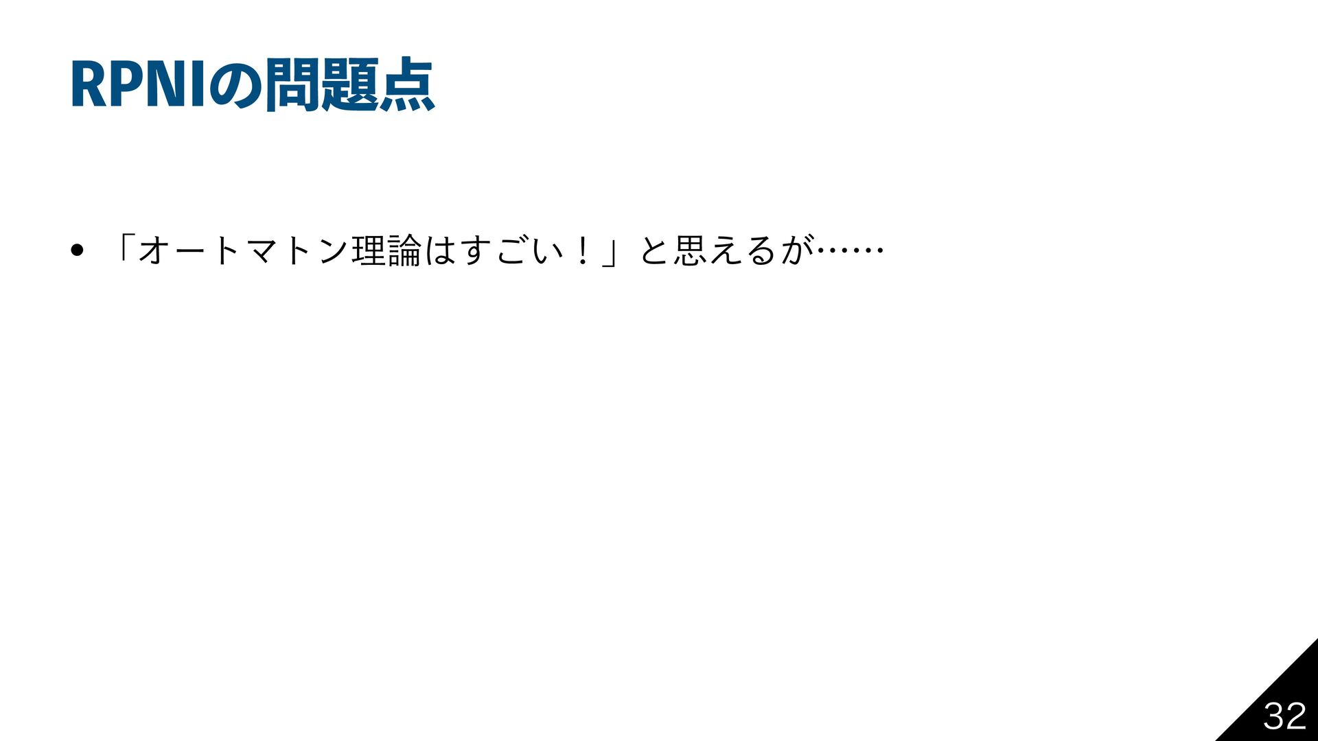 31/*ͷྫͰग़͖ͯͨਖ਼نදݱ w ࣮ࡍʹͬͱ͍ͷʹͰ͖Δ w ͕ɺͦΕʹৄࡉͳΦʔτϚτϯͷߏͷੳ͕ඞཁͰɺ ػցతʹΔͷ؆୯Ͱͳ͍ ͱࢥ͏ 0 0