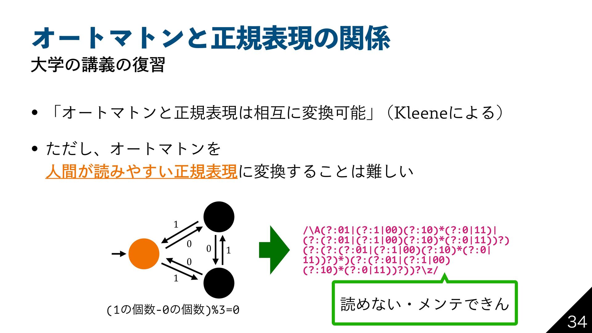 ΦʔτϚτϯͱਖ਼نදݱͷؔ େֶͷߨٛͷ෮श w ʮΦʔτϚτϯͱਖ਼نදݱ૬ޓʹมՄೳʯ ,MFFOFʹΑΔ w ͨͩ͠ɺΦʔτϚτϯΛ ਓ͕ؒಡΈ͍͢ਖ਼نදݱʹม͢Δ͜ͱ͍͠