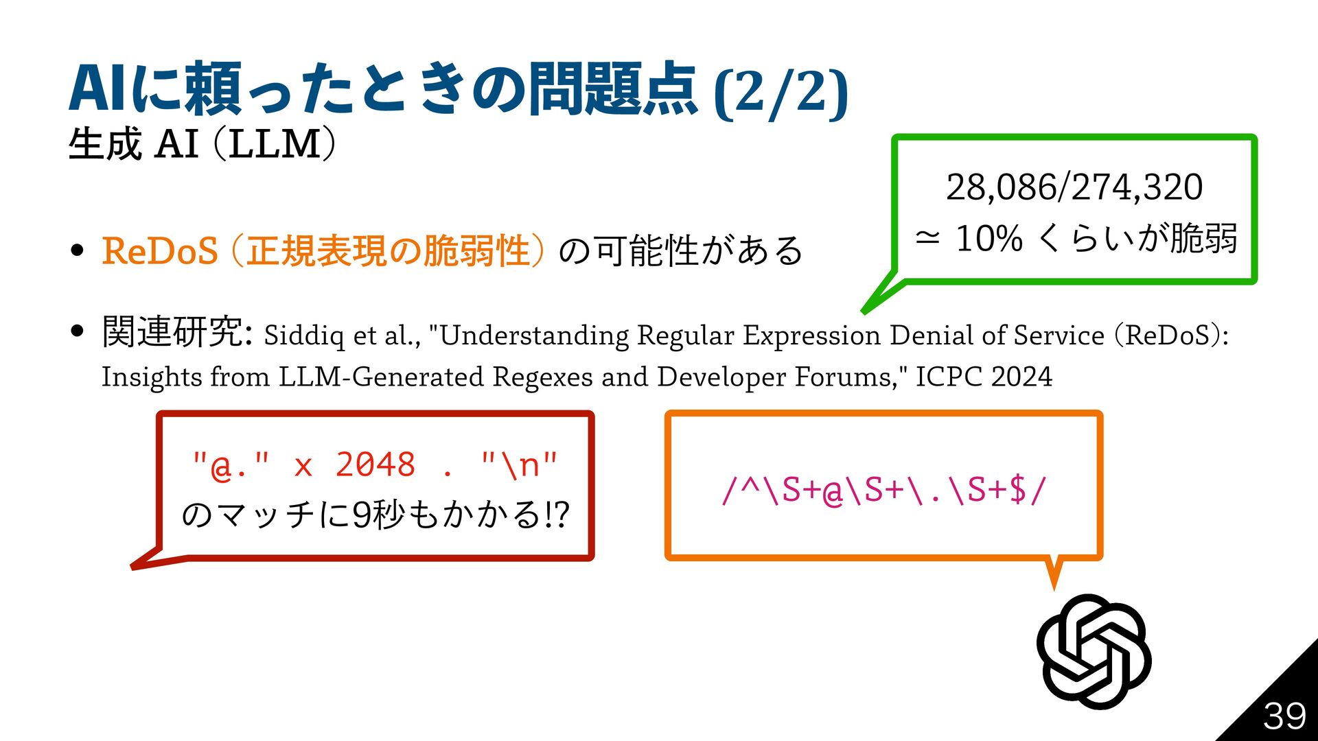 "*ʹཔͬͨͱ͖ͷ (2/2) ੜ"* --. w 3F%P4 ਖ਼نදݱͷ੬ऑੑ ͷՄೳੑ͕͋Δ w ؔ࿈ݚڀ4JEEJRFUBM