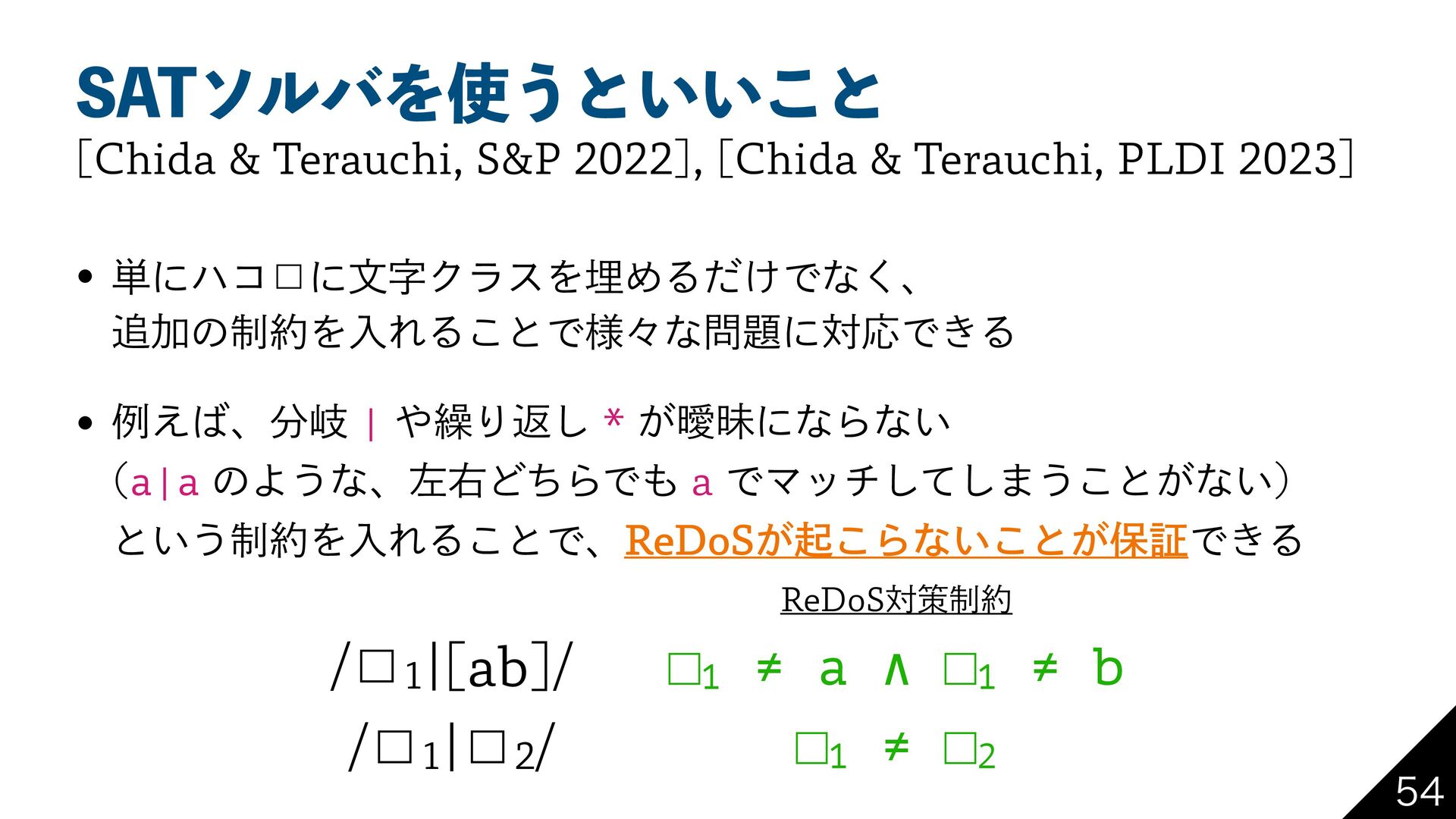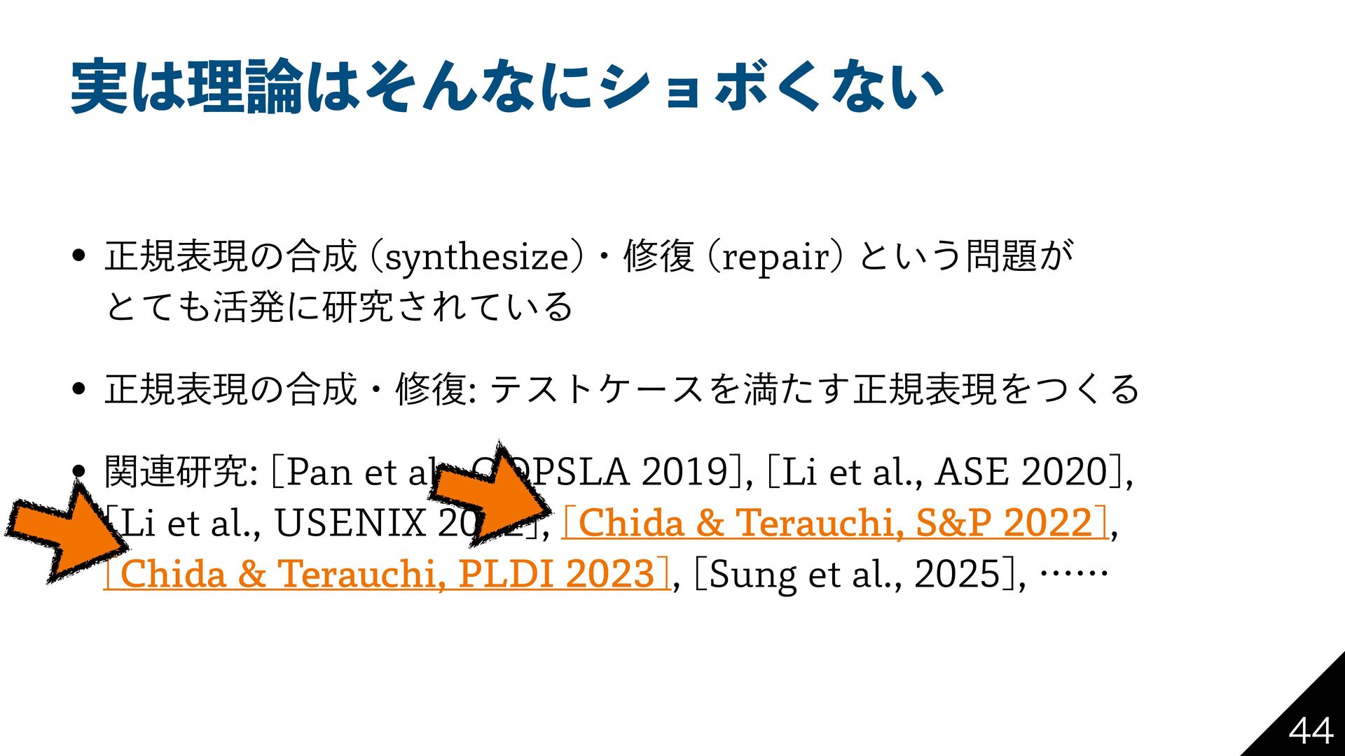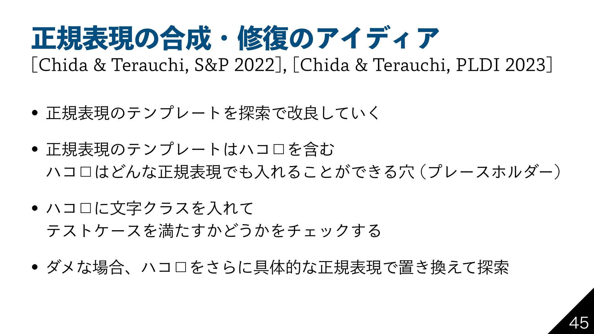 1FSMͰ ؆୯ͳղܾࡦ Regexp::Assemble RPNI ReDoSͳͲͷ 2 ʮਖ਼نදݱΛॻ͘ʯ ϓϩάϥϜ͕ ཉ͍͠ ࡶͳ ༷ ςετ έʔε ੜAI (LLM) Ͱ ʮ࠷ॳͷਖ਼نදݱʯ Λੜ ਖ਼نදݱͷम෮ ΞϧΰϦζϜ ځ 2 ڀ