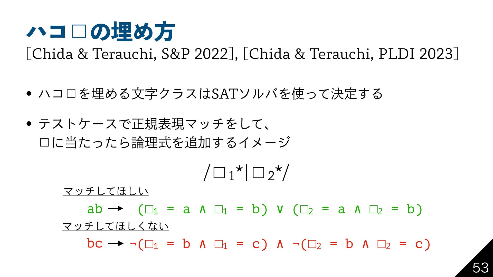 ϋί˘ͷຒΊํ w ϋί˘ΛຒΊΔจࣈΫϥε4"5ιϧόΛܾͬͯఆ͢Δ w ςετέʔεͰਖ਼نදݱϚονΛͯ͠ɺ ˘ʹͨͬͨΒཧࣜΛՃ͢ΔΠϝʔδ <$IJEB5FSBVDIJ 41> <$IJEB5FSBVDIJ