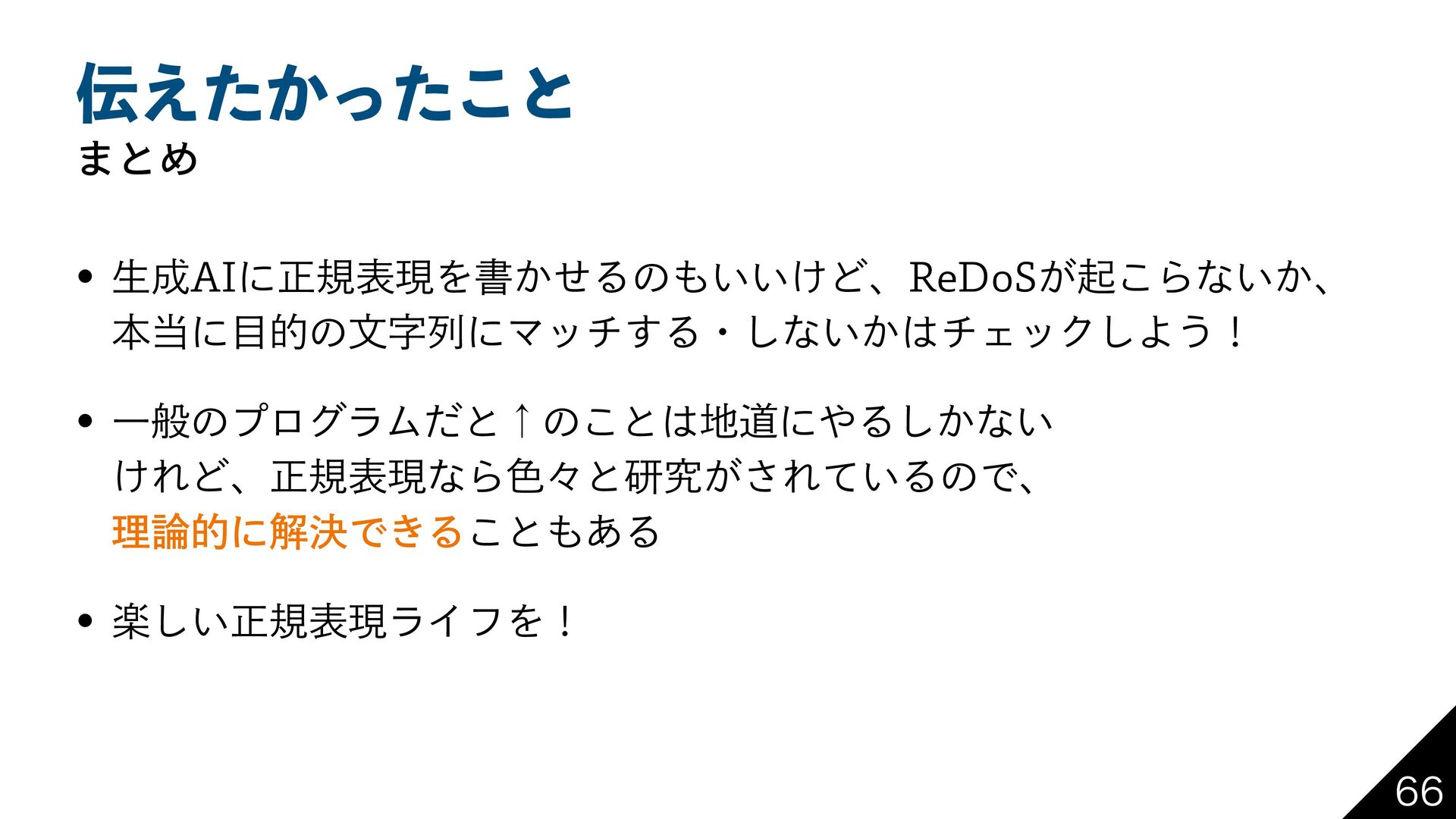 ͔͑ͨͬͨ͜ͱ ·ͱΊ w ੜ"*ʹਖ਼نදݱΛॻ͔ͤΔͷ͍͍͚Ͳɺ3F%P4͕ى͜Βͳ͍͔ɺ ຊʹతͷจࣈྻʹϚον͢Δɾ͠ͳ͍͔νΣοΫ͠Α͏ʂ w ҰൠͷϓϩάϥϜͩͱˢͷ͜ͱಓʹΔ͔͠ͳ͍ ͚ΕͲɺਖ਼نදݱͳΒ৭ʑͱݚڀ͕͞Ε͍ͯΔͷͰɺ ཧతʹղܾͰ͖Δ͜ͱ͋Δ w