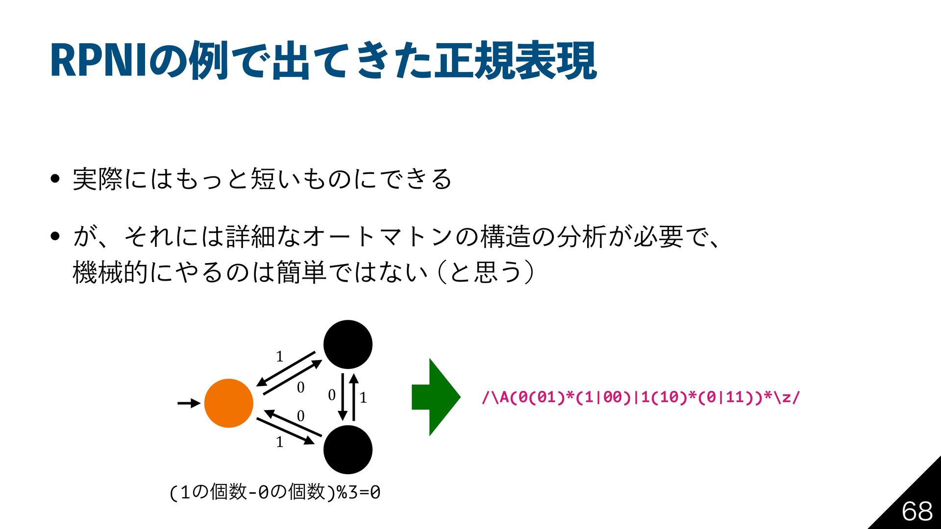 0ODJB(BSDÍB *OGFSSJOHSFHVMBSMBOHVBHFTJOQPMZOPNJOBMVQEBUFUJNF 111, 000, 11101, 01 0, 1, 00, 01 Ϛονͯ͠΄͍͠จࣈྻ Ϛονͯ͠΄͘͠ͳ͍จࣈྻ 0 0 0 1 1 1 (1ͷݸ-0ͷݸ)%3=0