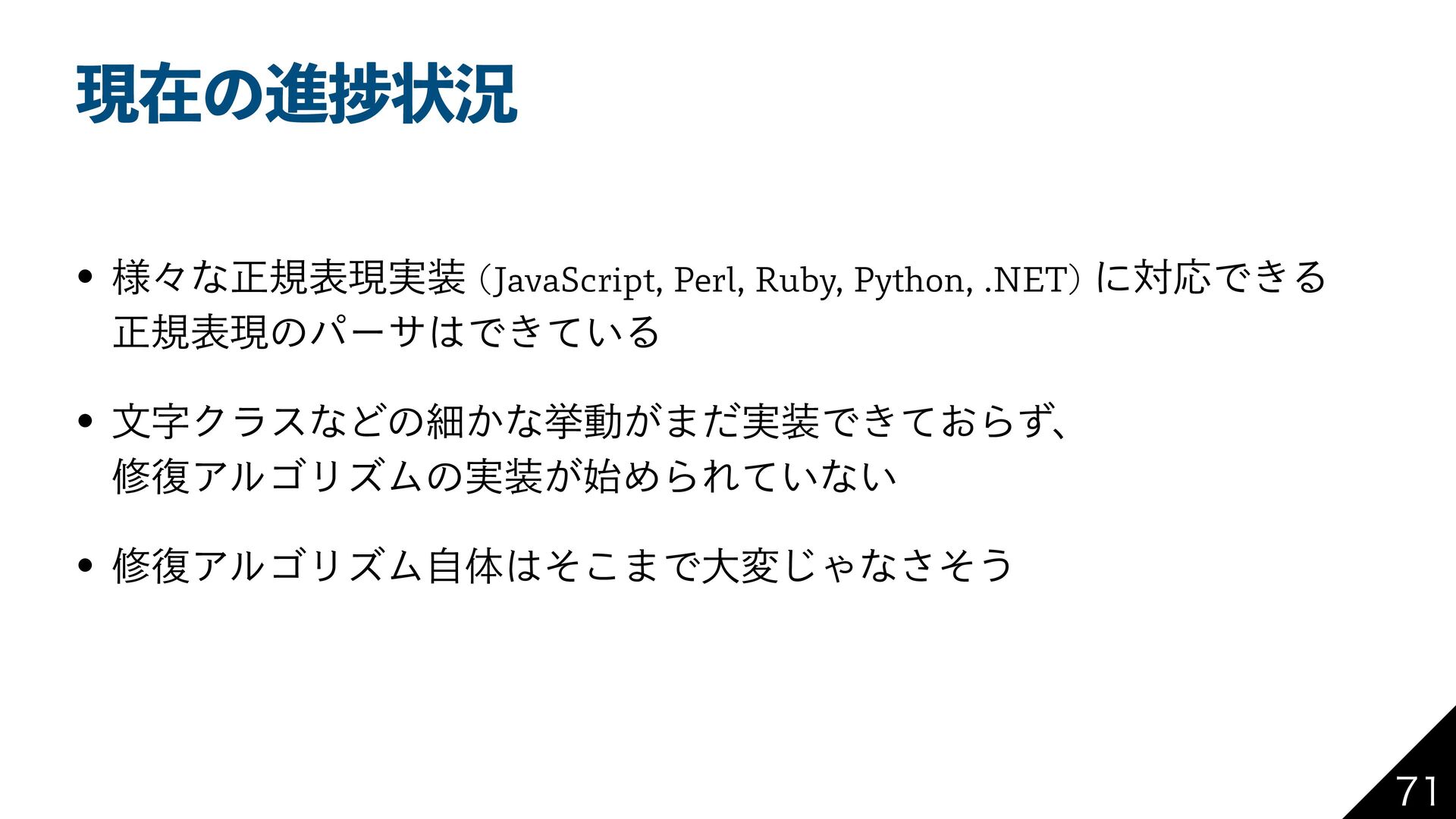 ݱࡏͷਐḿঢ়گ w ༷ʑͳਖ਼نදݱ࣮ +BWB4DSJQU 1FSM 3VCZ 1ZUIPO /&5 ʹରԠͰ͖Δ ਖ਼نදݱͷύʔαͰ͖͍ͯΔ