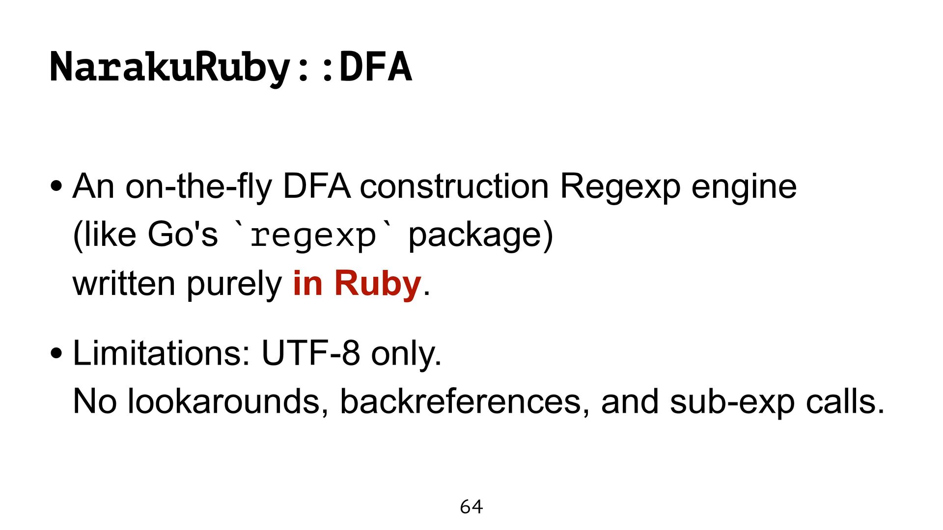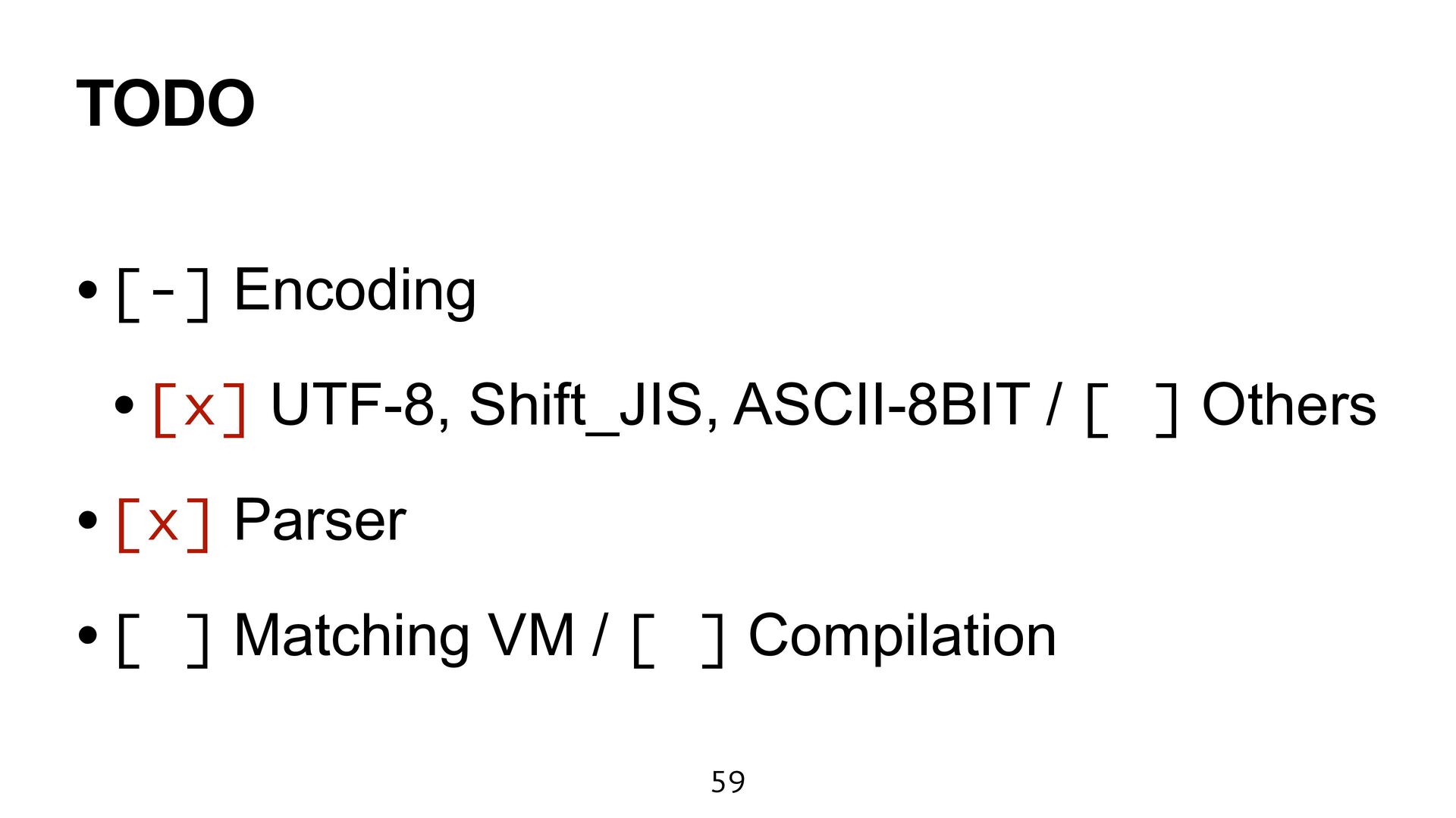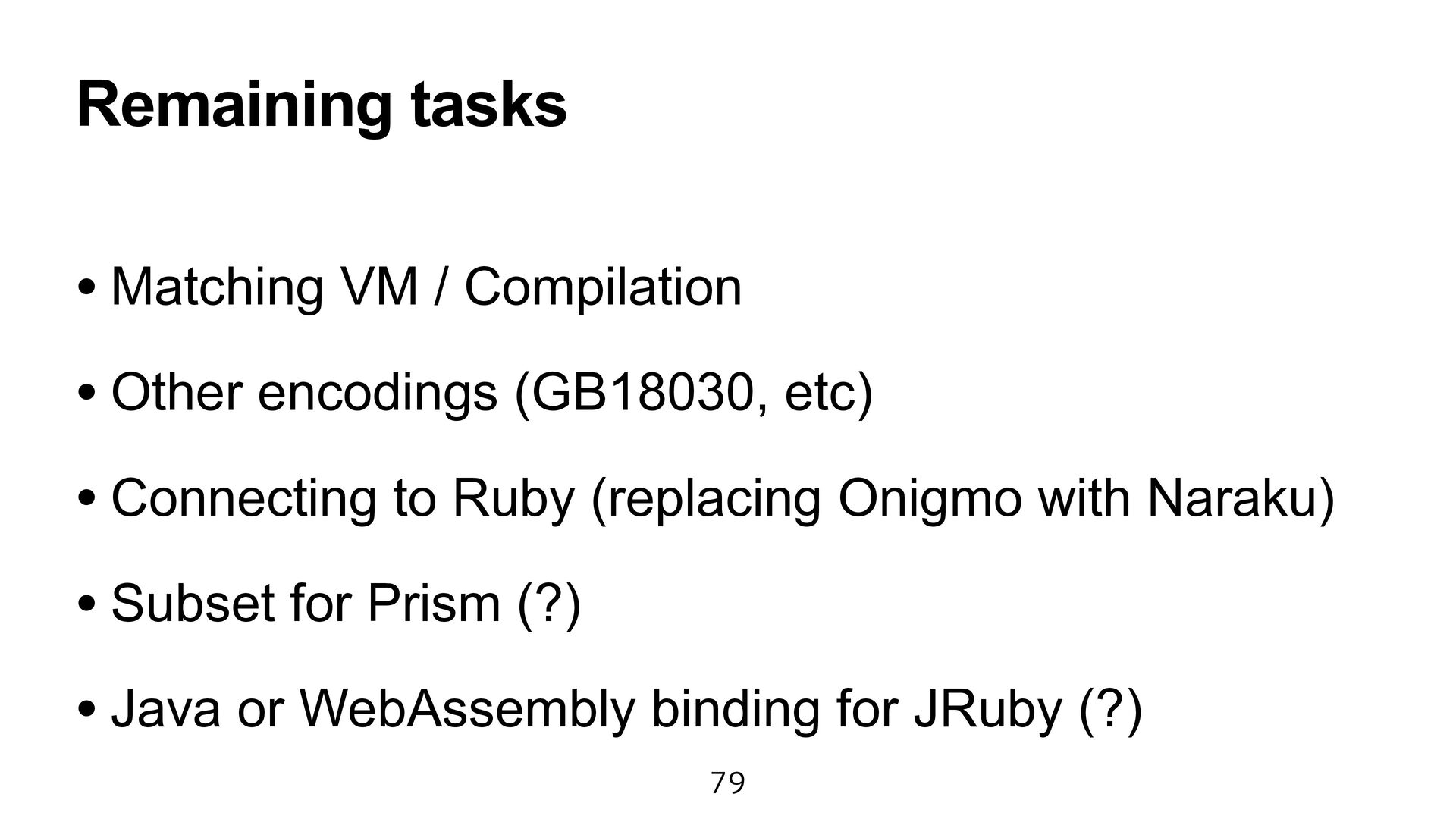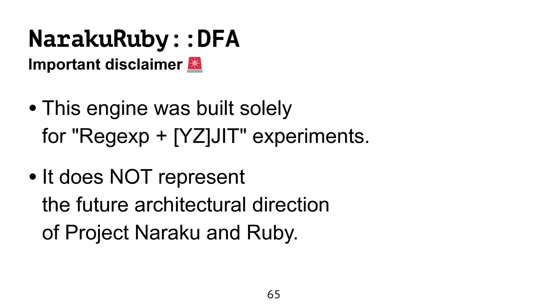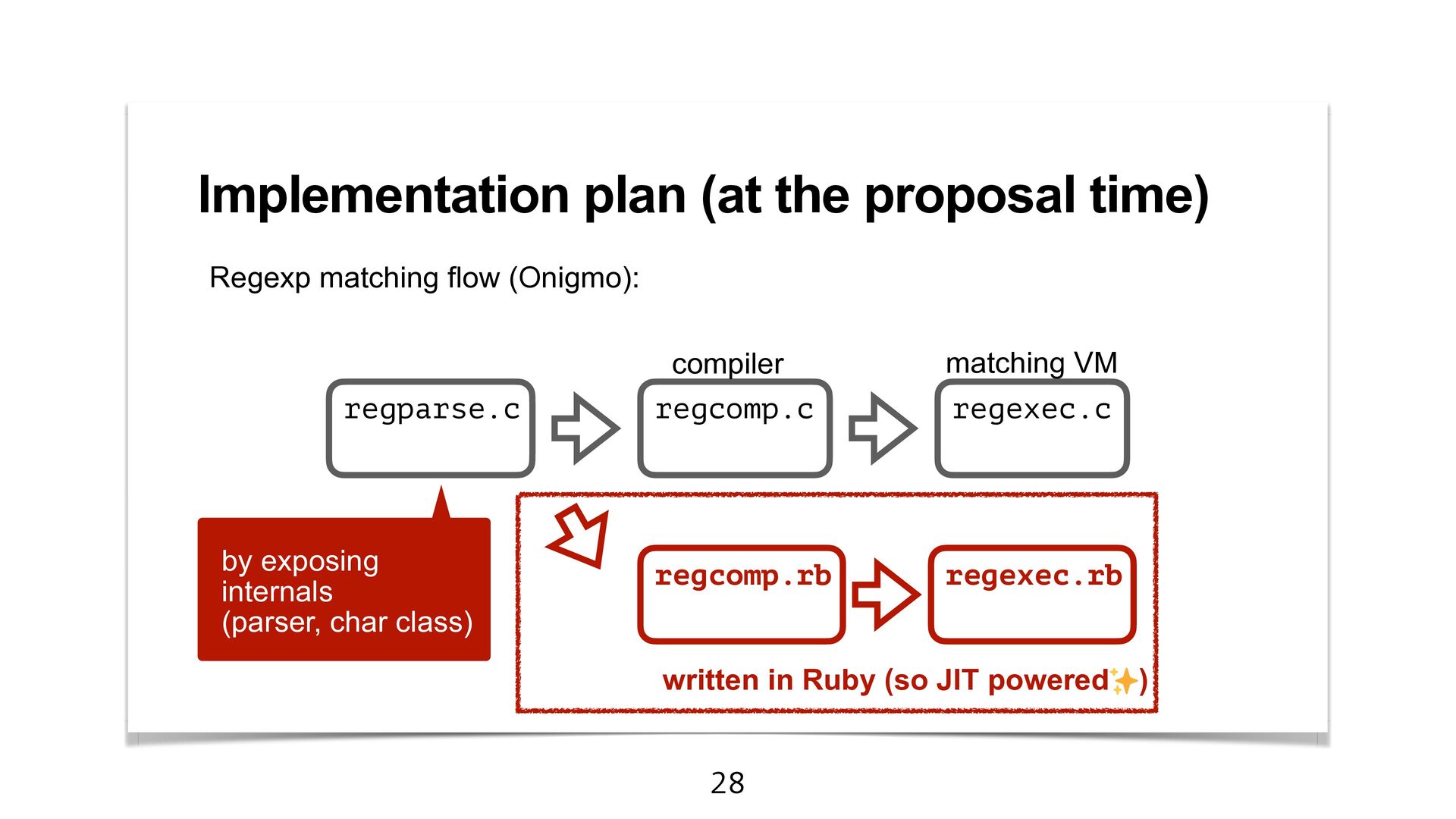 engine fast as Onigmo. • However, it causes a maintainability issue. • Perhaps, my program did not obtain the full ZJIT power. I try to learn the ZJIT architecture.