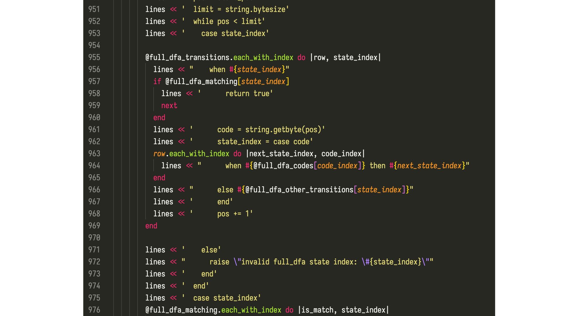 Over-optimized NarakuRubyDFA.match? (OO Naraku) 00/BSBLV0OJHNP MJUFSBM LJT JT LJT YTMPXF SFQFUJUJPO HSFFEZ LJT JT LJT YTMPXFS SFQFUJUJPO BNCJHVPVT JT JT LJT YGBTUFS with YJIT