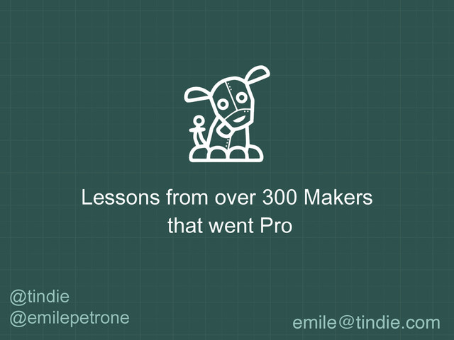 This is a talk by Emile Petrone, CEO of Tindie, presented at Makerland 2014 conference. This story contains experiences and lessons from over 300 Makers that went Pro and turned their hobby into business with Tindie.
