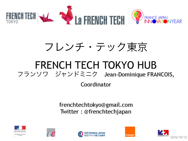 ϑϨϯνɾςοΫ౦ژ FRENCH TECH TOKYO HUB ϑϥϯιϫɹδϟϯυϛχΫɹJean-Dominique FRANCOIS, Coordinator
