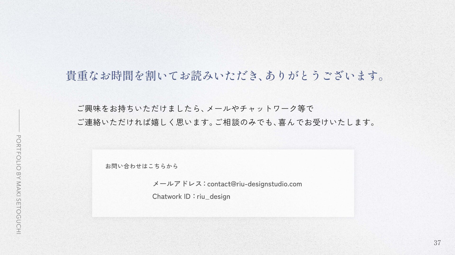 ポートフォリオをご覧いただきまして、誠にありがとうございます。