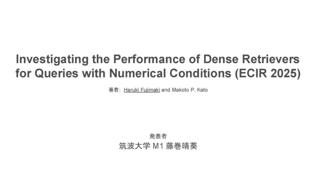 IR Reading 2025春で紹介する「Investigating the Performance of Dense Retrievers for Queries with Numerical Conditions (ECIR 2025)」の発表資料です
