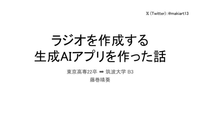 𝕏 (Twitter):@makiart13 ラジオを作成する 生成AIアプリを作った話 東京高専22卒 ➡ 筑波大学 B3 藤巻晴葵