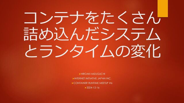 コンテナをたくさん 詰め込んだシステム とランタイムの変化 HIROAKI MIZUGUCHI INTERNET INITIATIVE JAPAN INC. CONTAINER