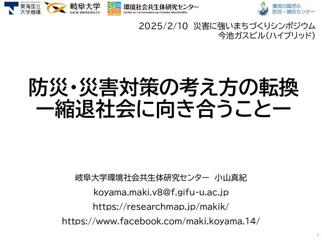 清流の国ぎふ 防災・減災センター 防災・災害対策の考え方の転換 ー縮退社会に向き合うことー 岐阜大学環境社会共生体研究センター 小山真紀