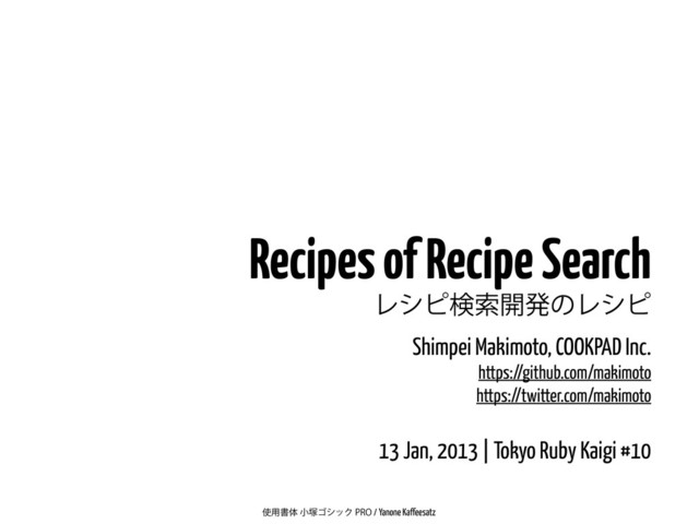 https://twitter.com/makimoto 13 Jan, 2013 | Tokyo Ruby Kaigi #10 ༻ॻମখ௩ΰγοΫ130/Yanone Kaffeesatz